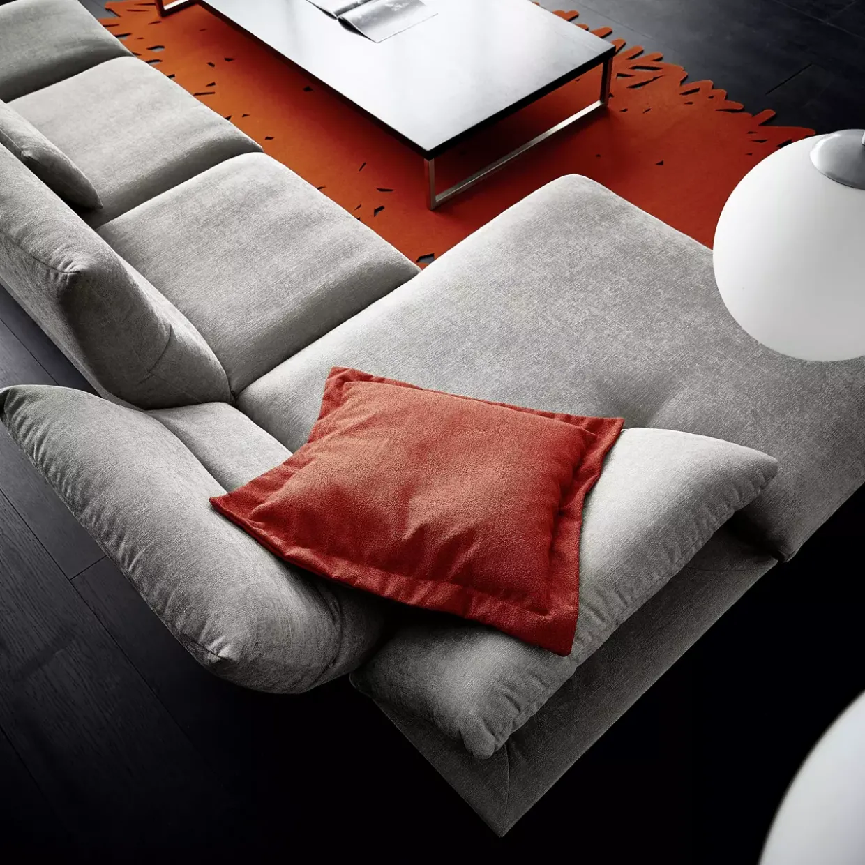 Ein weiteres Highlight ist die funktionale Rückenverstellung: Beim Umklappen der Rückenlehne verändert sich die Gesamthöhe um bis zu 20 cm, die Gesamttiefe wächst um bis zu 31 cm, und die Sitztiefe nimmt um bis zu 4 cm zu. Die legere Sitzpolsterung mit Kammerabsteppung bietet höchsten Sitzkomfort, unterstützt durch Polstergurte und hochwertigen Polyschaum.