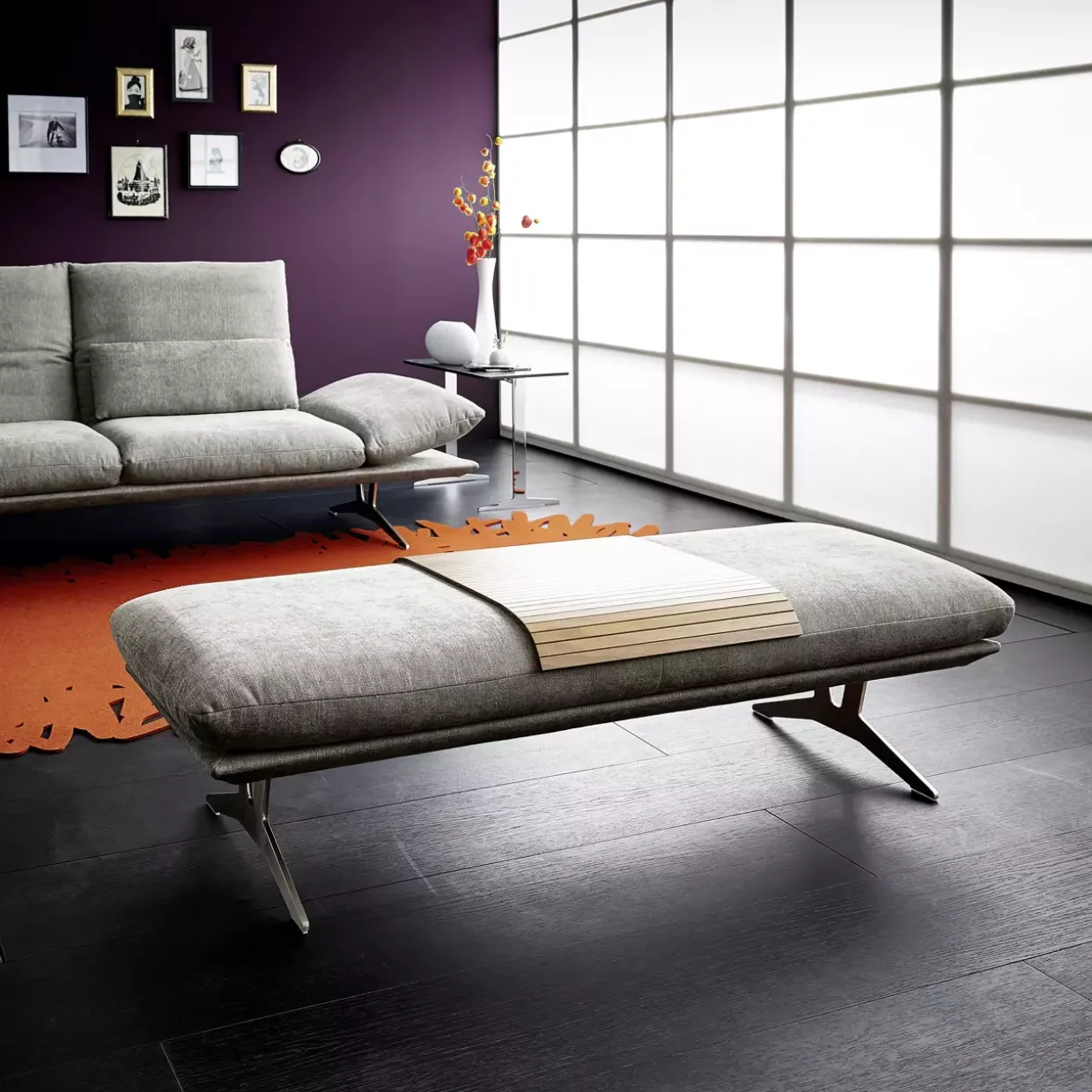 Inklusive Kopfteilverstellung bietet die Francis Polstergarnitur ein Höchstmaß an Komfort und Flexibilität. Der moderne Stil und die eleganten Farben Impression hellgrau und Nickel satiniert fügen sich harmonisch in jedes zeitgenössische Interieur ein. Die clevere Kombination aus Stoff und Metall verleiht dem Möbelstück eine robuste und zugleich ästhetische Erscheinung.