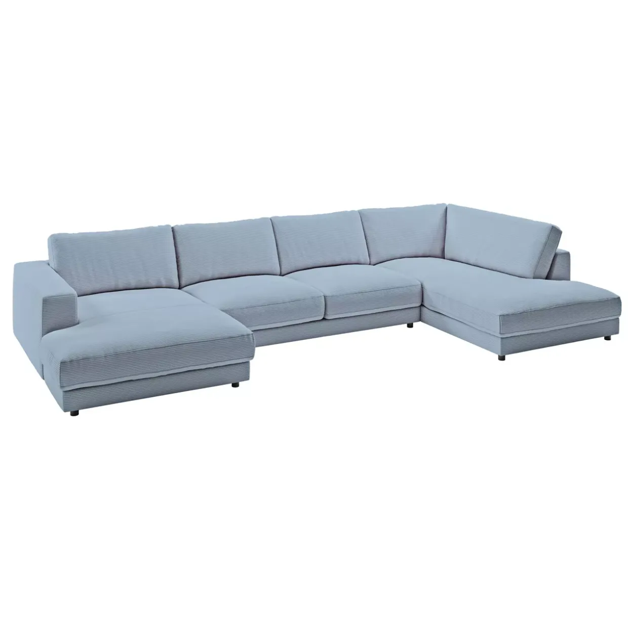 Die Hagerstown Polstergarnitur präsentiert sich in einem modernen Stil, der durch den eleganten light-blue Cordstoff unterstrichen wird. Der Cordstoff verleiht dem Möbelstück eine außergewöhnliche Haptik und sorgt für eine angenehme Sitzoberfläche. Die Fußform mit Gleitern sorgt für Stabilität und verleiht der Garnitur einen schwebenden Look, der perfekt in ein zeitgemäßes Wohnambiente passt.