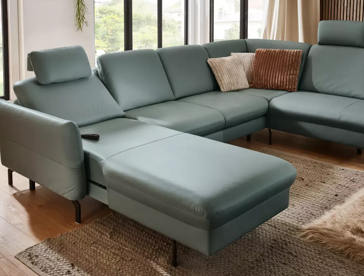 inkl. motorischer Verstellbarkeit bis zur abgeschrägten Liegeposition bei Canape. Bedienung per Ha