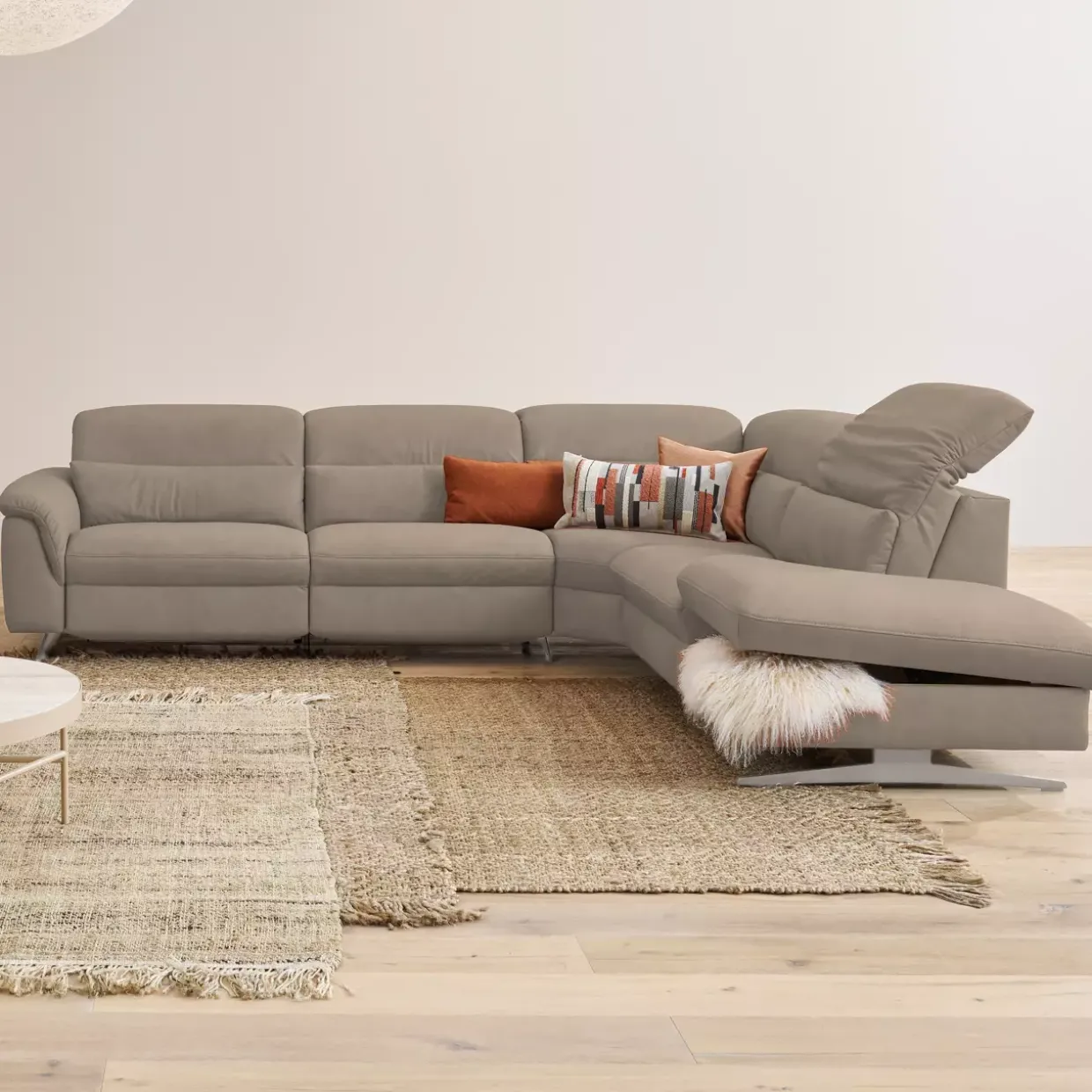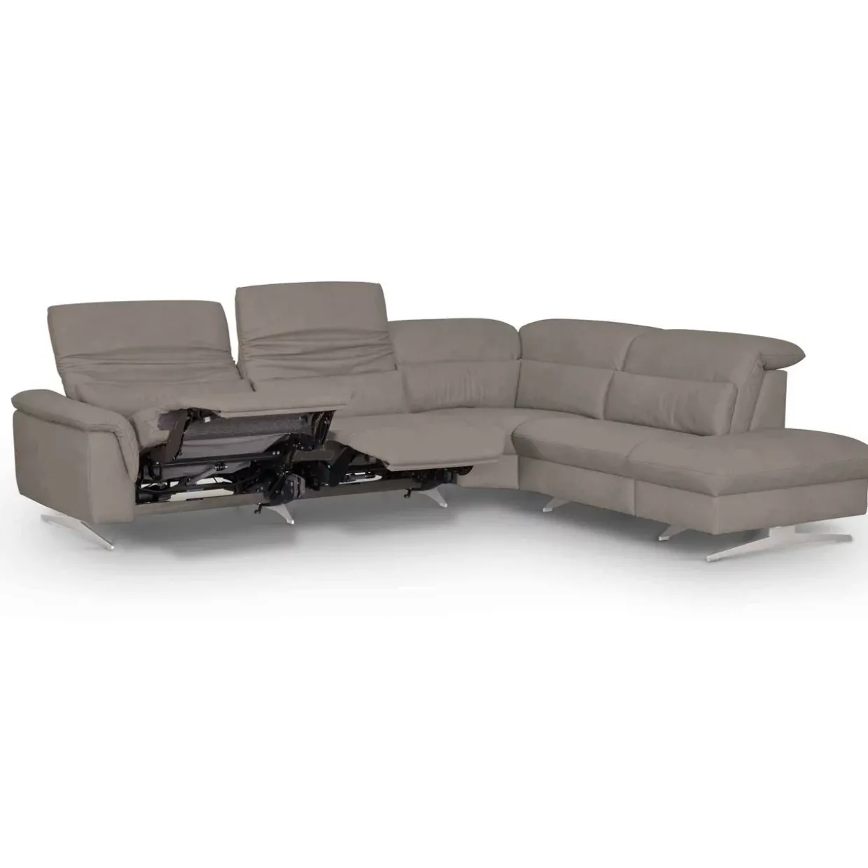 Die Polstergarnitur bietet durch die elektrische Kopfteilverstellung höchsten Komfort und Flexibilität. Leder und Metall vereinen sich in einem zeitlosen Design, das durch die gebürstete Oberfläche und die Edelstahloptik eine elegante Note erhält. Die Sitzfläche aus Superlastic soft sorgt für ein besonders weiches Sitzgefühl, das zum Verweilen einlädt.Für Entspannung auf höchstem Niveau sorgt die Relaxfunktion Wallfree. Diese ermöglicht es Ihnen, die Sitzposition zu verändern, ohne die Garnitur von der Wand abrücken zu müssen. Die Herz-Waage-Funktion im äußeren Sitz links trägt zusätzlich zu einem Gefühl der Schwerelosigkeit bei und fördert die Durchblutung.Manuelle Kopfteilverstellungen an den inneren Sitzen und dem Abschlusselement rechts bieten individuelle Anpassungsmöglichkeiten für jeden Sitzplatz. Der Echtbezug auf der Rückseite zeugt von Qualität und Langlebigkeit.Ein weiteres praktisches Detail ist der integrierte Stauraum, der Ihnen zusätzlichen Platz für Kissen oder andere Utensilien bietet. Diese Polstergarnitur vereint stilvolle Ästhetik mit durchdachter Funktionalität und wird so zum Herzstück Ihres Wohnzimmers. Die Verbindung aus hochwertigen Materialien und innovativen Funktionen macht dieses Möbelstück zu einer nachhaltigen Investition in Ihren Wohnkomfort.