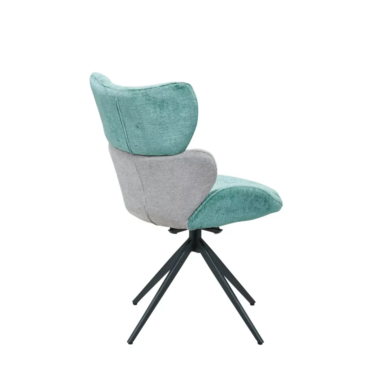 Der Polsterstuhl der Serie „Alaska S“ kombiniert modernes Design mit erstklassiger Funktionalität. Sein Gestell aus pulverbeschichtetem Metall in elegantem Schwarz verleiht ihm nicht nur Stabilität, sondern auch eine zeitgemäße Ästhetik. Die eckig-konisch zulaufende Form des Gestells verleiht dem Stuhl eine markante Silhouette, die ihn zum Blickfang in jedem Raum macht. Der Bezug aus Webstoff Bouclette in einem ansprechenden Mix aus Grün und Grau verleiht dem Stuhl eine gemütliche und zugleich moderne Ausstrahlung. Die Bouclette-Oberfläche sorgt zudem für ein angenehmes Sitzgefühl und unterstreicht den hochwertigen Charakter des Stuhls. Ein besonderes Highlight ist die 180°-Drehbarkeit des Stuhls, die Flexibilität und Bewegungsfreiheit im Raum ermöglicht. Darüber hinaus verfügt der Stuhl über eine praktische Rückholfunktion, die ein müheloses Zurückstellen nach dem Gebrauch gewährleistet und somit für eine aufgeräumte Optik sorgt.