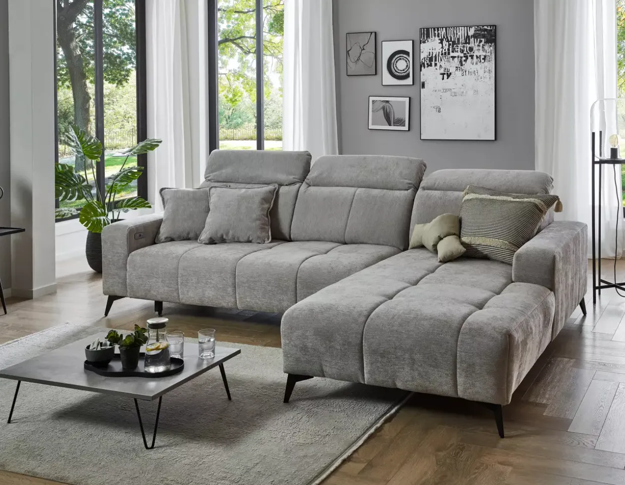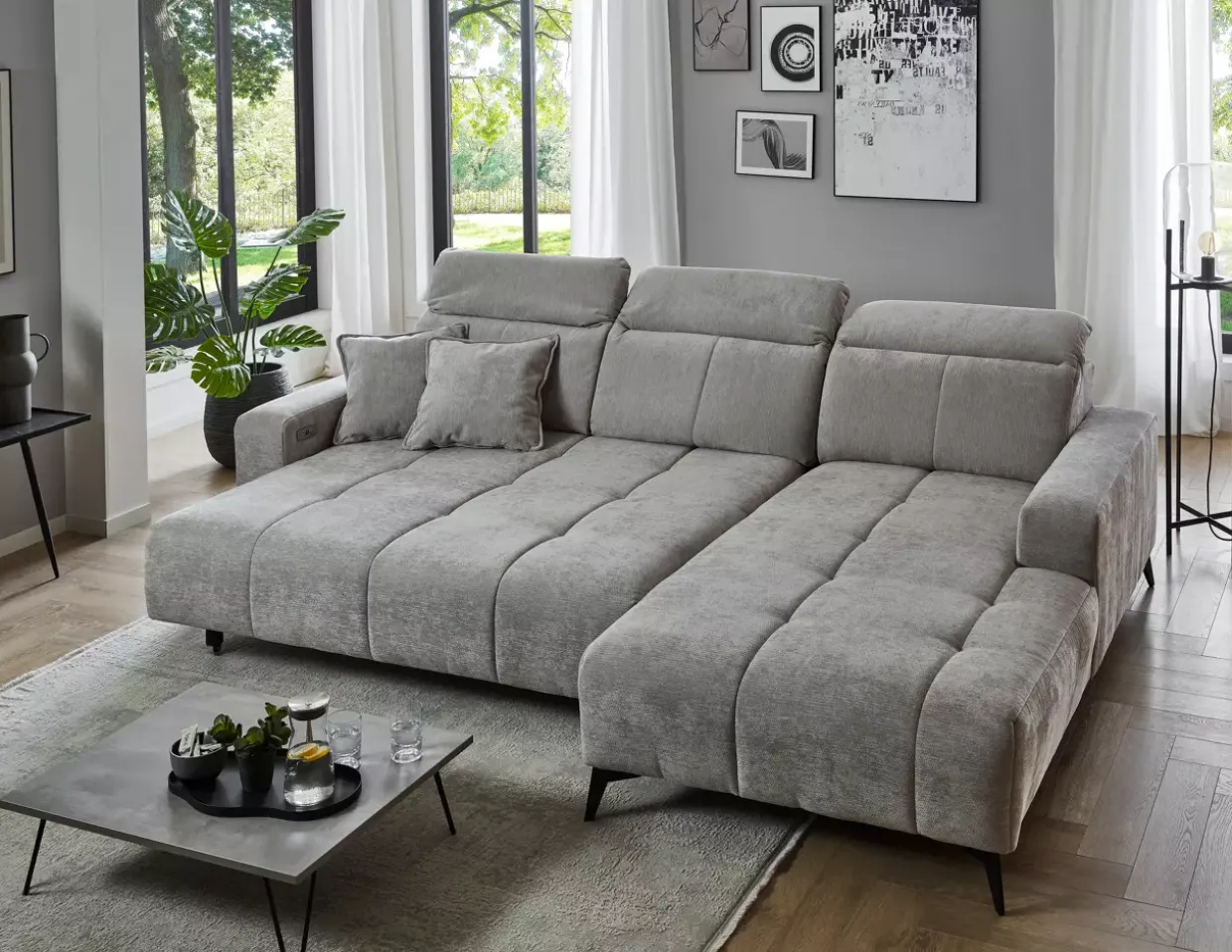 Eleganz trifft Funktionalität: Die Porto Polstergarnitur vereint schlichtes Design mit durchdachten Funktionen. Eine elektrische Sitztiefenverstellung ermöglicht es Ihnen, die Tiefe bis zu beeindruckenden 60 cm anzupassen, sodass jeder Sitzplatz individuell auf Ihre Bedürfnisse abgestimmt werden kann.