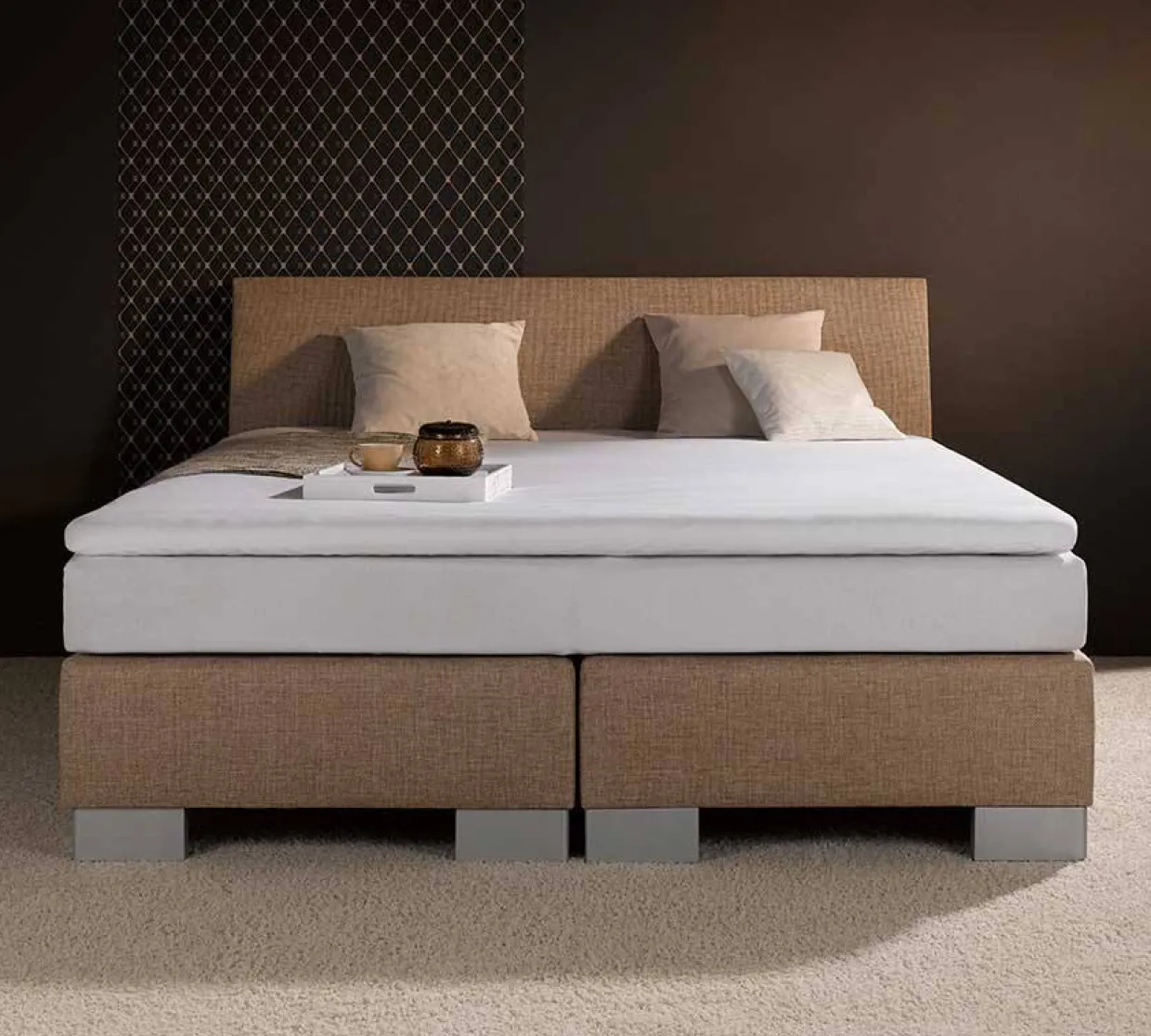 Erleben Sie die Eleganz des modernen Designs mit diesem platinfarbenen Spannbetttuch. Aus einem hochwertigen Mischgewebe gefertigt, bietet es nicht nur eine attraktive Optik, sondern auch einen erstklassigen Komfort. Die rechteckige Form sorgt dafür, dass es sich perfekt an Topper mit einer Höhe von 5 bis 10 cm anschmiegt.