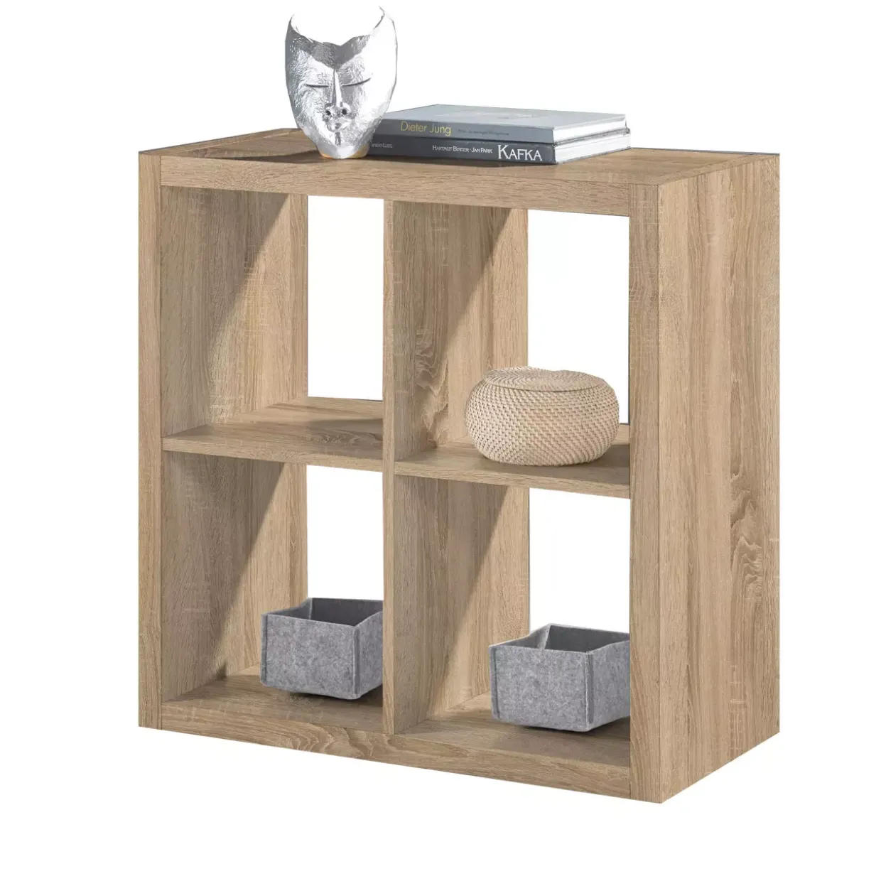 Eiche sonoma Nachbildung verleiht dem Raum eine warme und natürliche Atmosphäre. Dieser Raumteiler kombiniert modernes Design mit funktionaler Eleganz. Vier Fächer bieten vielseitige Möglichkeiten zur Gestaltung und Organisation Ihrer Wohnfläche. Ob als Abgrenzung zwischen Wohn- und Arbeitsbereich oder als stilvolles Möbelstück zur Präsentation von Dekoration, dieses Produkt erfüllt viele Zwecke.