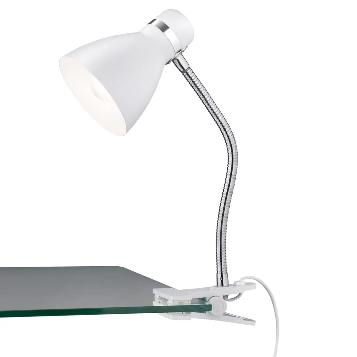 Ein eleganter, runder Formfaktor prägt das Design dieser Klemmleuchte, die dank ihrer klassischen Form und der weißen, matten Oberfläche zeitlos wirkt. Ob im Arbeitszimmer, Wohnzimmer oder Schlafzimmer, diese Leuchte fügt sich nahtlos in jedes Ambiente ein und sorgt für ein angenehmes Licht. Die Flexibilität der Leuchte wird durch ihre verstellbare Funktion unterstrichen, die es Ihnen ermöglicht, den Lichtwinkel nach Bedarf anzupassen.