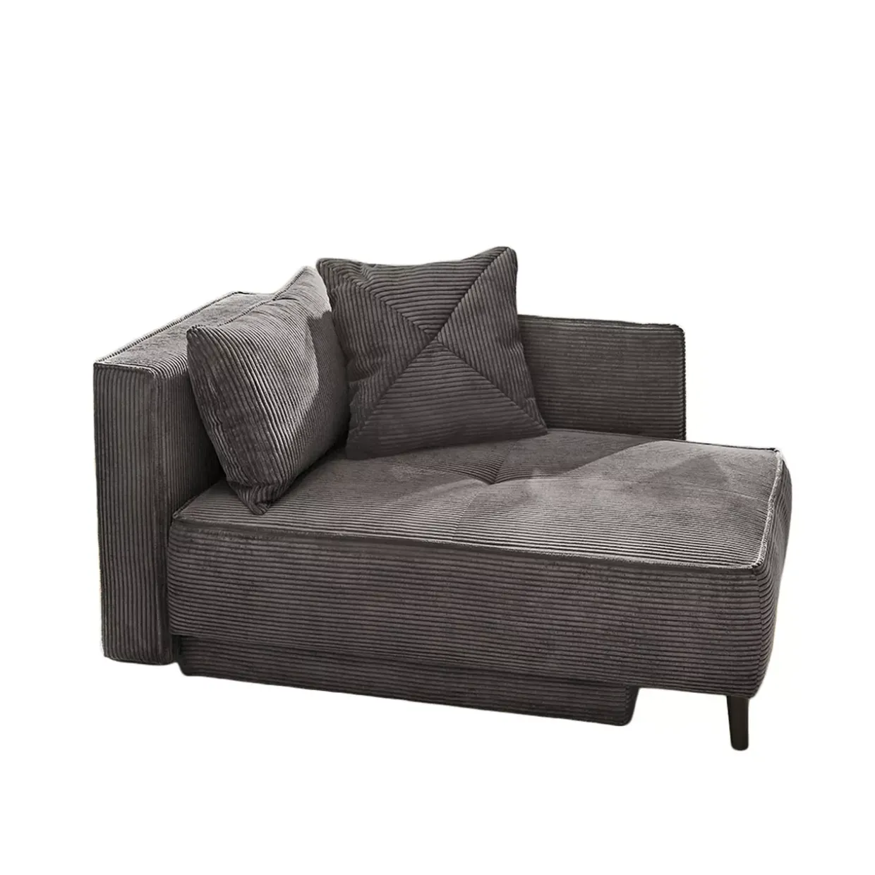 Flexibilität wird bei dieser Recamiere großgeschrieben: Sie lässt sich sowohl links als auch rechts montieren, was Ihnen die Freiheit gibt, sie optimal in Ihre Wohnlandschaft zu integrieren. Der Rücken ist echt bezogen, was bedeutet, dass die Recamiere auch frei im Raum platziert werden kann, ohne an Ästhetik zu verlieren. Ein weiteres Highlight ist der integrierte Bettkasten, der Ihnen zusätzlichen Stauraum bietet. Ob für Decken, Kissen oder andere Accessoires – hier finden Sie den Platz, den Sie benötigen, um Ihr Zuhause aufgeräumt und stilvoll zu gestalten.