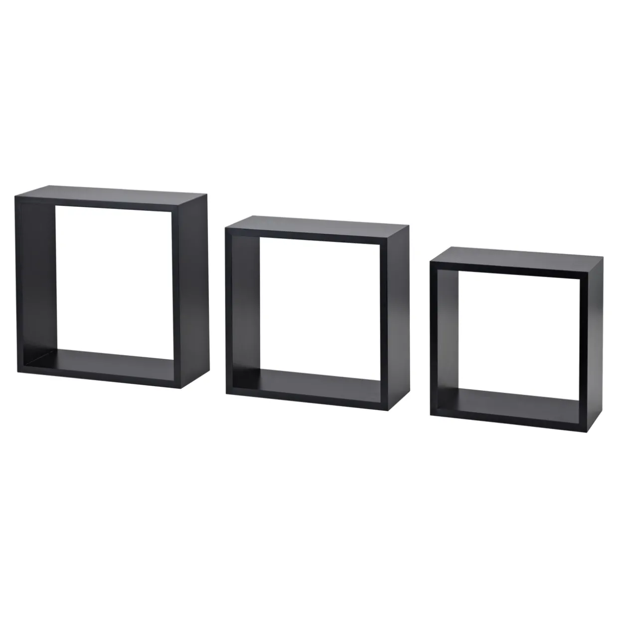 Ein modernes Design trifft auf Funktionalität. Das Cubes Frame Set Regal 3-Set überzeugt mit seinem eleganten schwarzen Holzwerkstoff, der in jedem Raum eine stilvolle Atmosphäre schafft. Dank der im Lieferumfang enthaltenen Befestigungsmaterialien gestaltet sich die Montage unkompliziert und schnell. Diese Regale sind nicht nur optisch ansprechend, sondern auch robust, denn sie sind bis zu 15 kg belastbar.