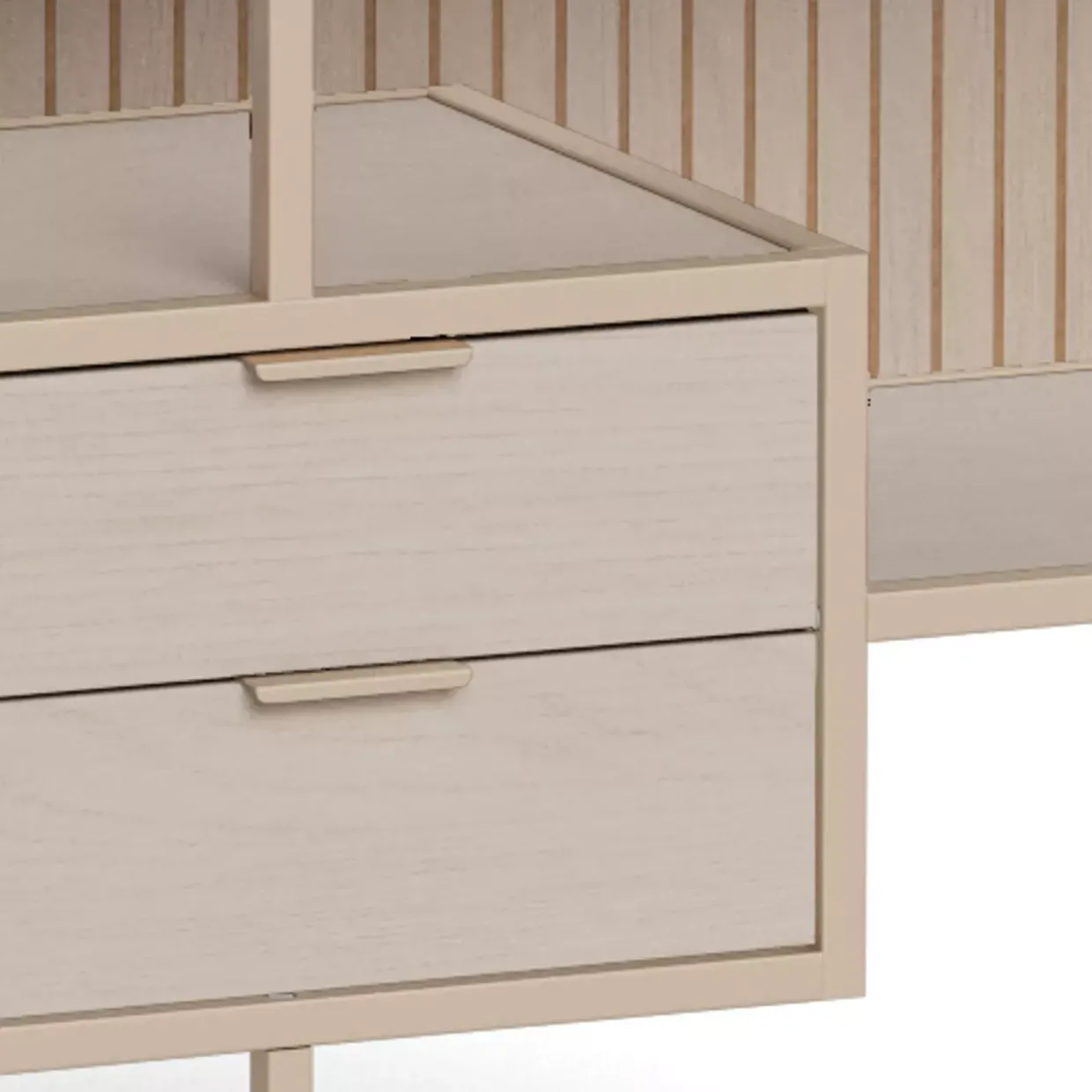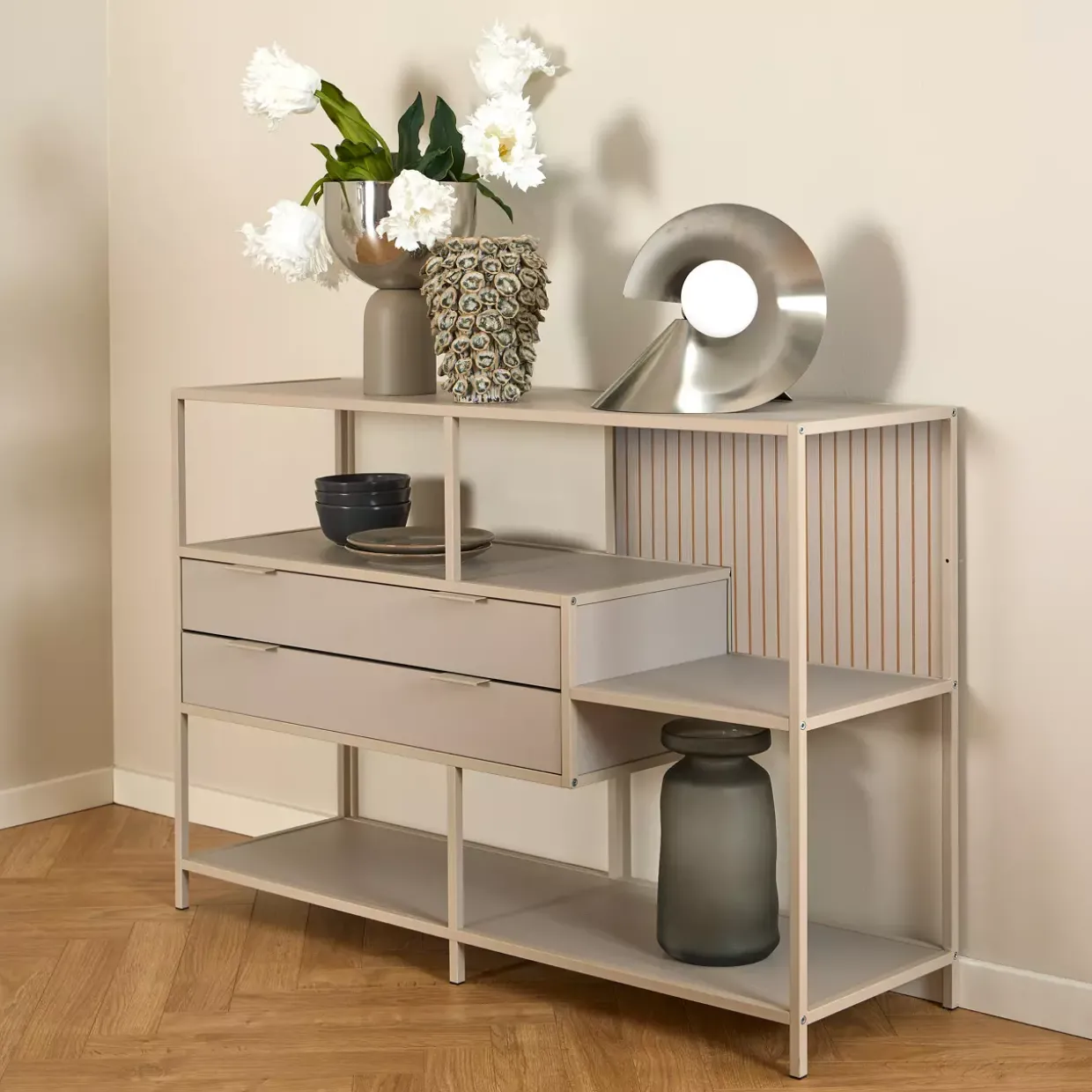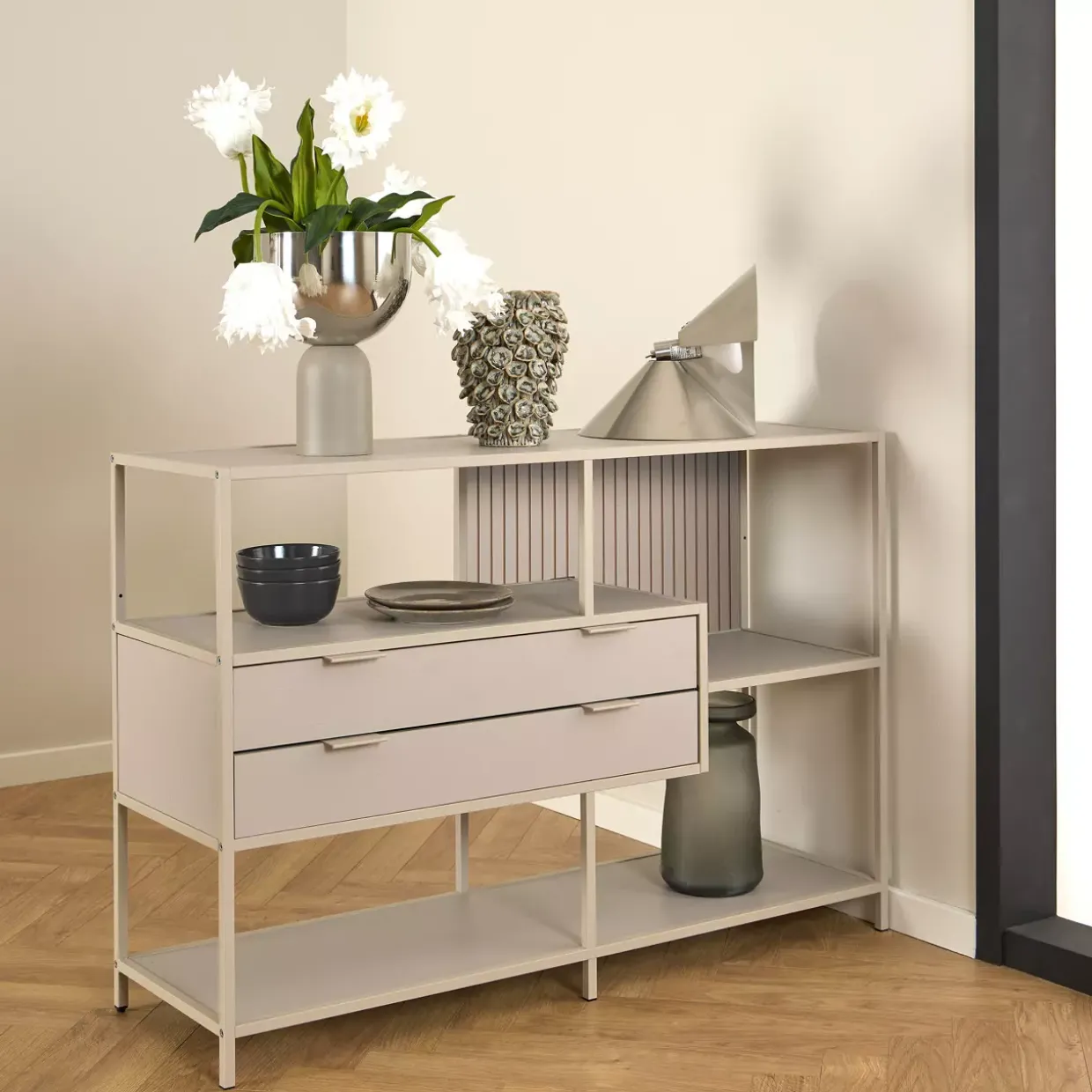Mit seinen zwei Schubladen und drei Böden bietet es reichlich Platz für die Organisation verschiedenster Gegenstände. Egal ob Bücher, Dekorationsartikel oder andere Sammlerstücke, alles findet seinen Platz und wird stilvoll in Szene gesetzt. Die melaminharzbeschichtete Oberfläche sorgt zudem für eine pflegeleichte Nutzung im Alltag.