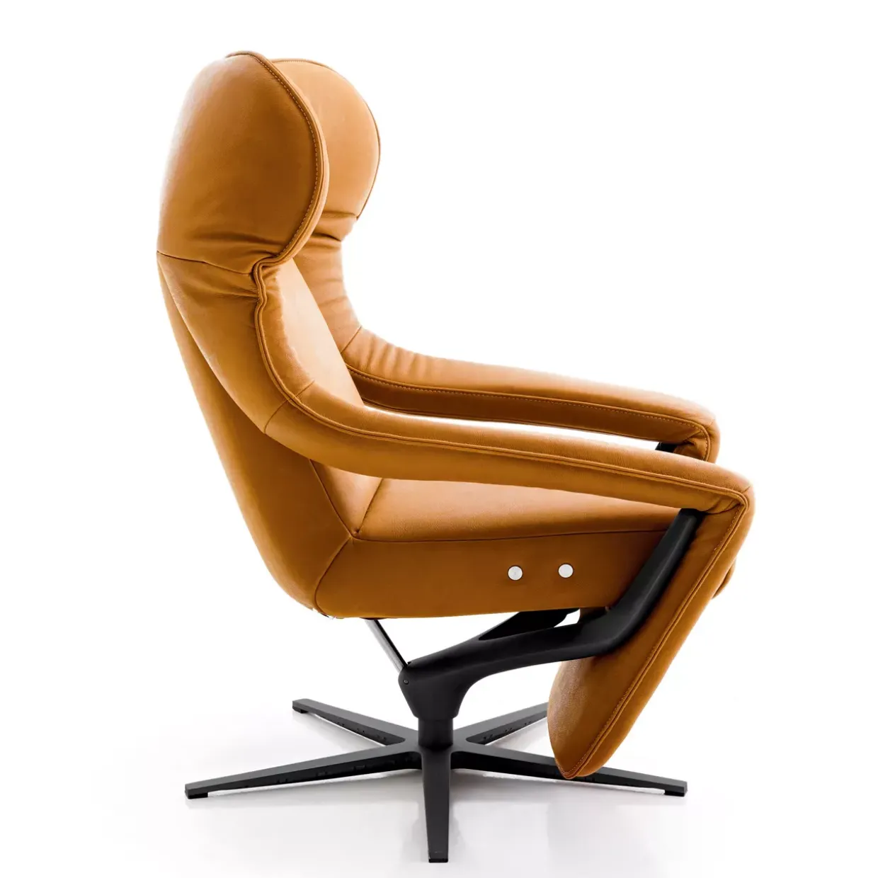 Der YOKO NO.1 V Relaxsessel beeindruckt mit einer modernen Ausstrahlung und einer einladenden Farbe, die Wärme in jeden Raum bringt. Die Kombination aus edlem Leder und robustem Aluminium verleiht dem Sessel nicht nur eine hochwertige Optik, sondern auch Langlebigkeit und Stabilität.