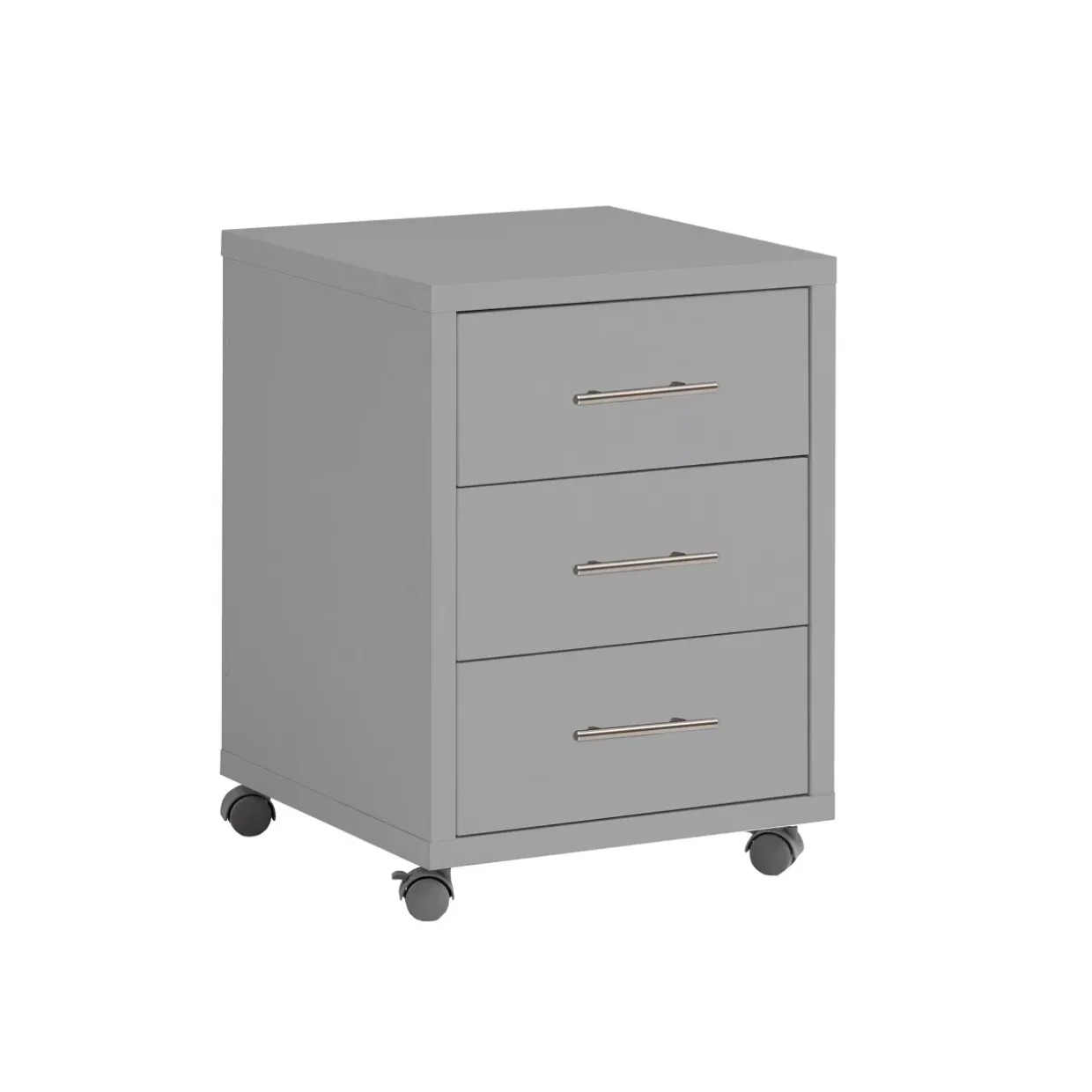 Platingrau verleiht dem Schreibtisch mit Rollcontainer eine raffinierte und elegante Note, die sich harmonisch in moderne Arbeitsumgebungen einfügt. Der Loft-Stil ist bekannt für seine minimalistische Ästhetik und klare Linien, die eine inspirierende Arbeitsatmosphäre schaffen. Ein weiteres bemerkenswertes Detail ist die Auswahl zwischen Kufen- und Rollenfußform. Während die Kufen eine stabile und elegante Basis bieten, ermöglichen die Rollen eine flexible Mobilität, die sich perfekt für dynamische Arbeitsumgebungen eignet. Diese Vielseitigkeit stellt sicher, dass der Schreibtisch sich Ihren individuellen Bedürfnissen anpasst und sich leicht in jedem Raum umgestalten lässt.Der Rollcontainer ergänzt den Schreibtisch nicht nur in puncto Funktionalität, sondern bietet auch zusätzlichen Stauraum für Dokumente und Büromaterialien. So bleibt Ihr Arbeitsplatz stets aufgeräumt und organisiert, was die Konzentration und Effizienz steigert. Die Kombination aus hochwertigen Materialien und durchdachtem Design macht diesen Schreibtisch zu einer langfristigen Investition in Ihre Arbeitsumgebung. Ob im Homeoffice oder im professionellen Büro, dieser Schreibtisch bietet die perfekte Balance zwischen Stil und Funktion. Finden Sie in diesem Möbelstück einen verlässlichen Partner, der Ihren Arbeitsalltag bereichert und Ihre Kreativität fördert.