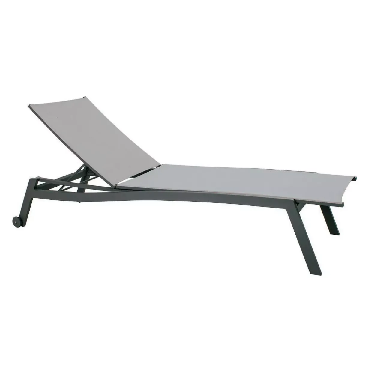 Die pulverbeschichtete Oberfläche der Allround Rollenliege vereint Ästhetik mit Langlebigkeit. Ein elegantes Zusammenspiel von Silber und Anthrazit unterstreicht den modernen Stil dieses Möbelstücks. Gefertigt aus einer raffinierten Kombination von Textil und Aluminium, verspricht die Liege sowohl Komfort als auch Stabilität. Die Kufenform der Füße verleiht ihr eine stilvolle Leichtigkeit.