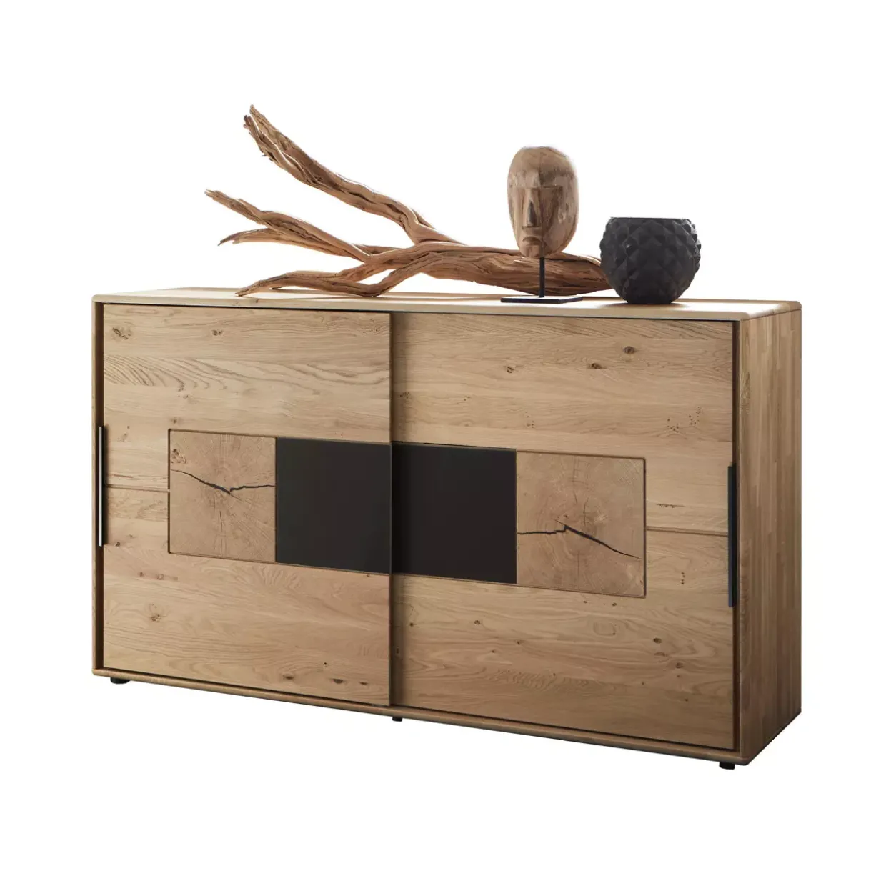Kreativität trifft auf Funktionalität: Die Schiebetüren-Kommode vereint modernes Design mit praktischen Eigenschaften. Vielseitigkeit ist ein weiteres Merkmal, das durch die geschickte Kombination von Materialien und Farben erreicht wird. Der natürliche Charme der Wildeiche harmoniert perfekt mit den klaren Linien und dem zeitgemäßen Design.