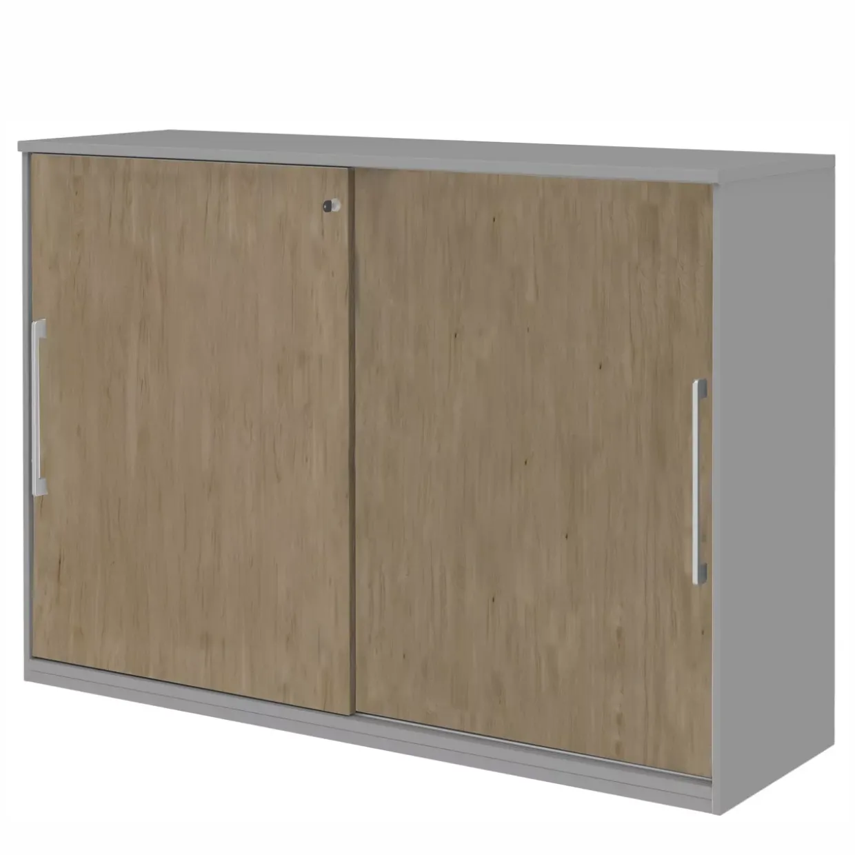 Die moderne Ästhetik des Schiebetürenelements wird durch die clevere Materialwahl unterstrichen, die sowohl optisch als auch haptisch überzeugt. Der Einsatz von Metallakzenten verleiht dem Möbelstück eine zeitgemäße Note, während die Holzwerkstoffkomponenten Wärme und Natürlichkeit ausstrahlen.
