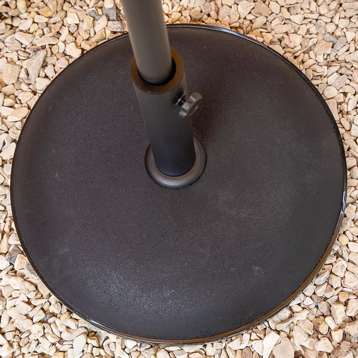 Ein eleganter Schirmständer, der durch seinen modernen Stil besticht, ist das Modell Bonaire. Gefertigt aus hochwertigem Stein, bietet es nicht nur eine robuste und langlebige Lösung für Ihre Sonnenschirme, sondern auch eine ansprechende ästhetische Ergänzung für Ihren Außenbereich. Die Farbe Schwarz verleiht dem Schirmständer eine zeitlose Eleganz, die sich harmonisch in verschiedene Garten- und Terrassengestaltungen einfügt.Stein als Material ist bekannt für seine Beständigkeit gegen Witterungseinflüsse. Dies gewährleistet, dass der Schirmständer auch bei Regen und Sonneneinstrahlung seine Form und Funktion bewahrt. Dank seiner soliden Bauweise sorgt er für die notwendige Stabilität, selbst bei stärkerem Wind.Die Kombination aus modernem Design und natürlichen Materialien macht diesen Schirmständer zu einem Blickfang, der sowohl praktische als auch ästhetische Anforderungen erfüllt. Ob auf der Terrasse, im Garten oder auf dem Balkon, der Bonaire Schirmständer fügt sich nahtlos in jede Umgebung ein.Wenn Sie also auf der Suche nach einer stilvollen und funktionalen Lösung sind, um Ihre Sonnenschirme sicher zu platzieren, könnte dieses Modell eine ausgezeichnete Wahl sein. Es verbindet Funktionalität mit einem Hauch von Eleganz und Modernität.