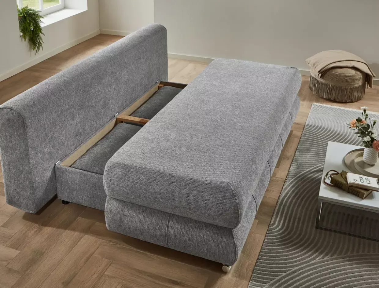 Borna überzeugt nicht nur durch Funktionalität, sondern auch durch seine elegante Erscheinung. Die edle Kombination aus silbrigem Glanz und Edelstahl-Elementen verleiht dem Sofa eine zeitlose Eleganz. Ob als gemütlicher Rückzugsort oder als Schlafgelegenheit für Gäste – dieses Sofa passt sich Ihren Bedürfnissen an.