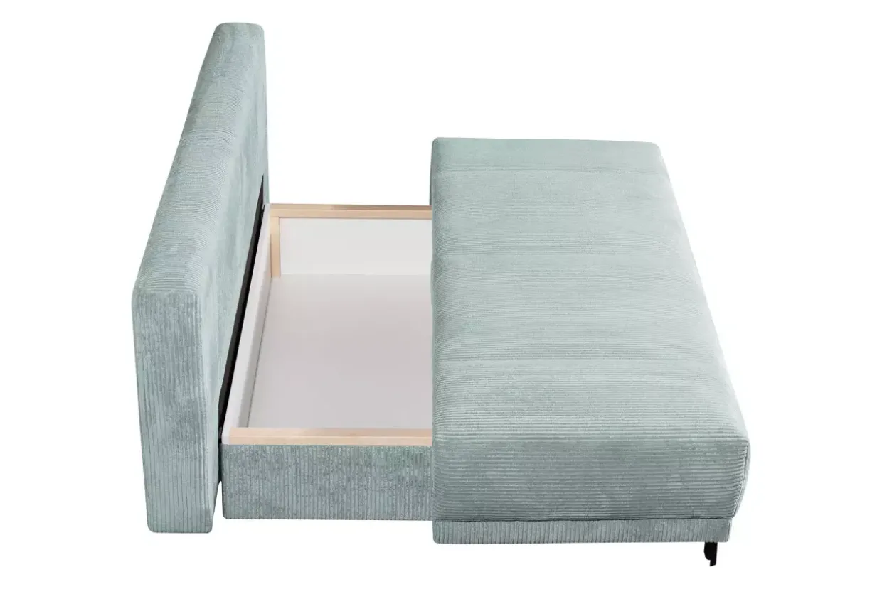 Ein stilvoller Begleiter für Ihr Zuhause: Das Juna Schlafsofa beeindruckt mit seinem konventionellen Design und einer charmanten Kombination aus Kord in Hellblau und schwarzem Metall. Diese harmonische Farbgebung fügt sich mühelos in verschiedene Wohnstile ein und verleiht Ihrem Raum eine elegante Note.