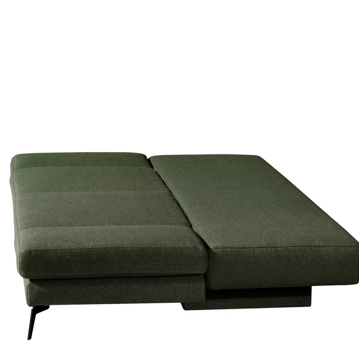 Das grüne und schwarze Design schafft eine harmonische Farbgebung, die sowohl auffällig als auch dezent wirkt. Der Rücken des Schlafsofas ist in echter Ausführung gefertigt, was für eine hochwertige Verarbeitung und eine ansprechende Optik sorgt.