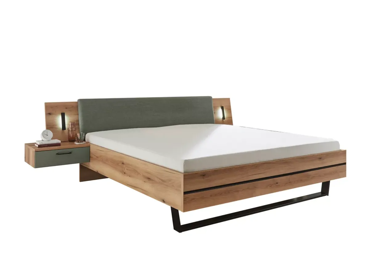 Ein besonderes Highlight dieses Möbels ist das gepolsterte Kopfteil, das nicht nur Komfort bietet, sondern auch ein optisches Statement setzt. Gefertigt aus hochwertigem Holzwerkstoff, verspricht es Langlebigkeit und Stabilität. Die sorgfältige Auswahl der Materialien und das durchdachte Design machen den Unterschied in Qualität und Ästhetik aus.