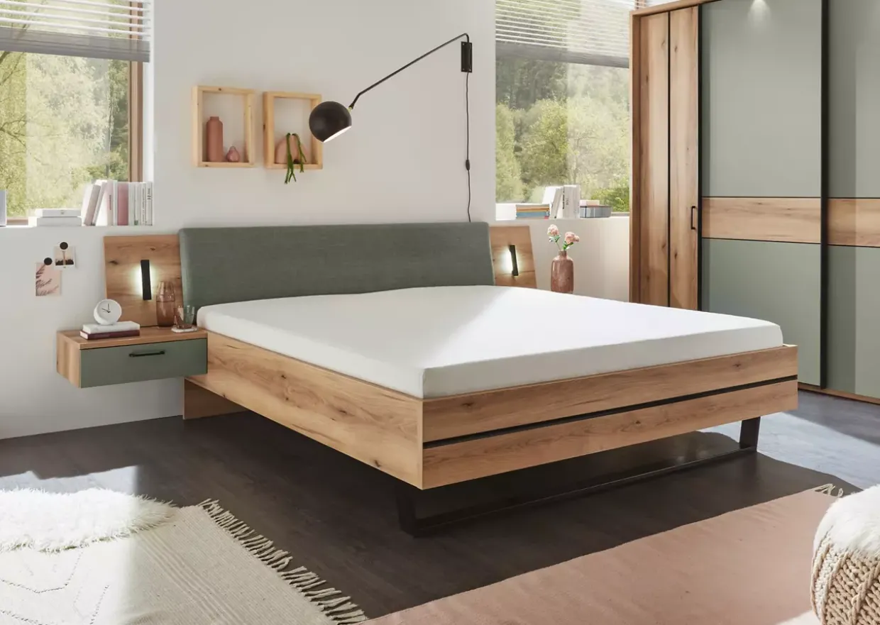Eurasia Oak Nachbildung zieht mit ihrem zeitlosen Charme in jedes Schlafzimmer ein. Die Farbgebung in Kombination mit Salbei verleiht dem Raum eine harmonische und beruhigende Atmosphäre. Der Stil ist unverkennbar skandinavisch und betont Schlichtheit sowie Funktionalität.