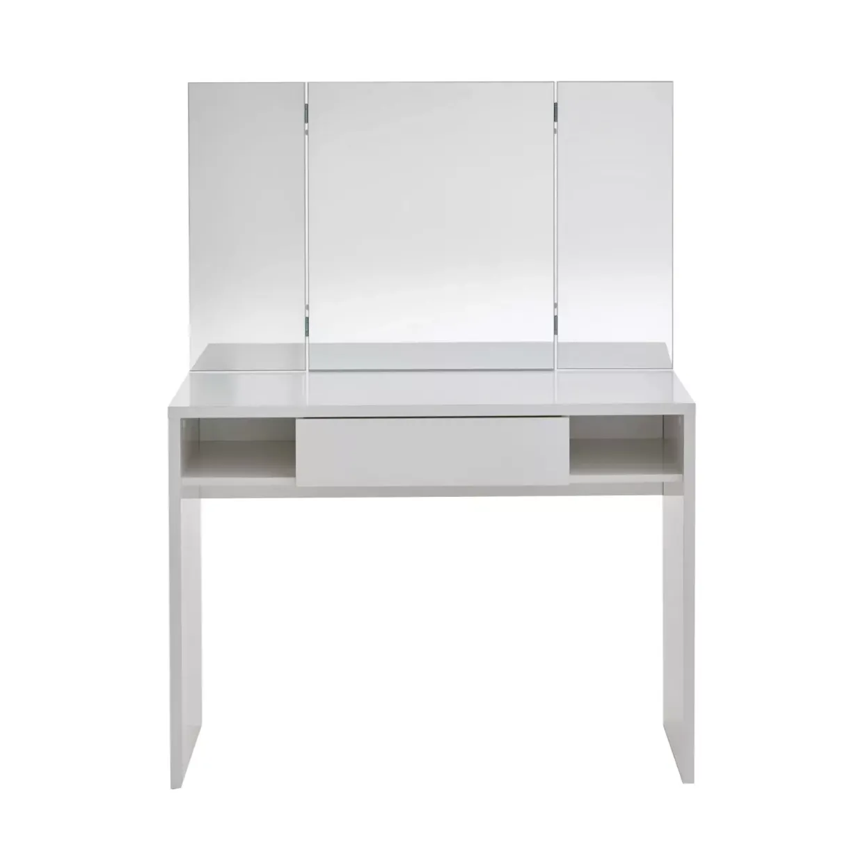 Ein unverkennbarer Stil: Modernität trifft auf Funktionalität. Der Jolien Schminktisch beeindruckt mit seiner zeitlosen Eleganz und passt perfekt in jedes Wohnambiente. Der edelglänzende Weißton verleiht dem Raum eine helle und freundliche Atmosphäre und sorgt dafür, dass Ihr Schlafzimmer oder Ankleidezimmer stets stilvoll wirkt.