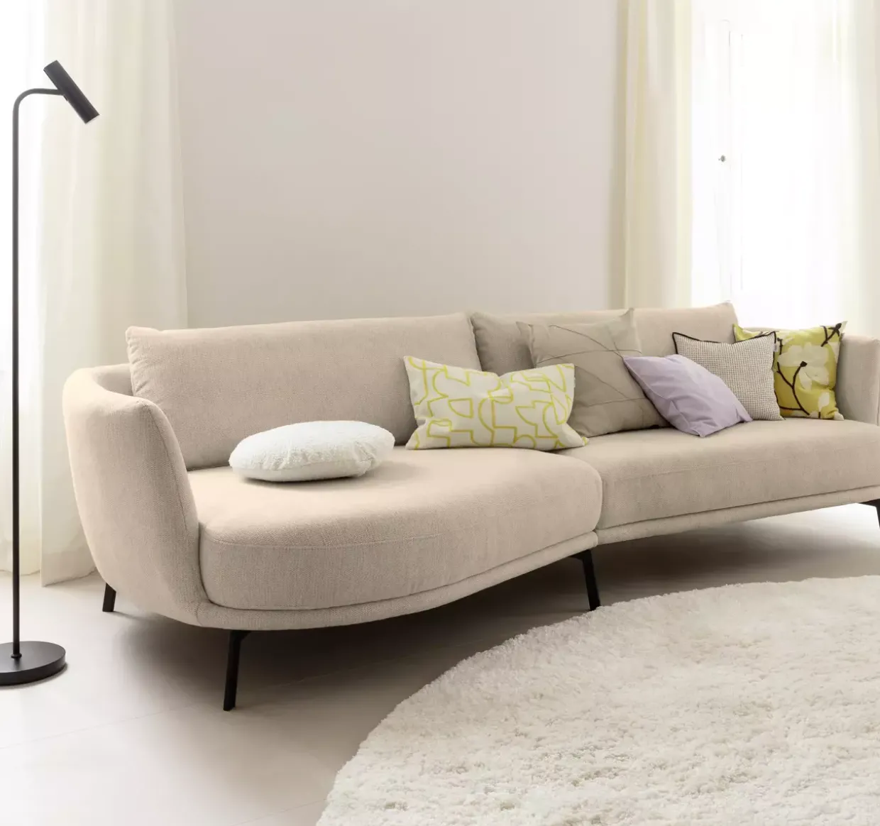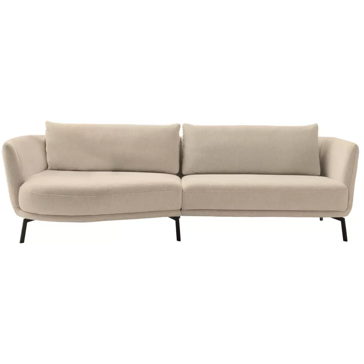 Ein Hauch von Modernität durchzieht das Design dieser exquisiten Polsterkombination, die sich durch eine stilvolle Kombination aus Stoff und Metall auszeichnet. Die harmonische Farbpalette in Novara Clean Nature und Schwarz Matt verleiht dem Möbelstück eine zeitgemäße und zugleich elegante Optik. Eine der herausragenden Eigenschaften dieser Polsterkombination ist der Rückenbezug aus Echtmaterial, der nicht nur für ein ansprechendes Erscheinungsbild sorgt, sondern auch Langlebigkeit und Komfort bietet. Die legere Polsterung, gepaart mit einer hochwertigen PUR-Schaum-Polsterung, sorgt für ein Sitzgefühl, das sowohl bequem als auch unterstützend ist.Zwei großzügige Rückenkissen sind im Lieferumfang enthalten und steigern den Komfort zusätzlich. Dieser durchdachte Aufbau ermöglicht es Ihnen, sich nach einem langen Tag entspannt zurückzulehnen und die wohlverdiente Ruhe zu genießen. Die Polsterkombination ist mehr als nur ein Möbelstück; sie ist ein Ausdruck von Stil und Komfort, der in jedem modernen Wohnraum einen besonderen Platz findet. Tauchen Sie ein in ein neues Level der Wohnkultur mit einer Polsterlösung, die durch ihre Details und Qualität überzeugt.