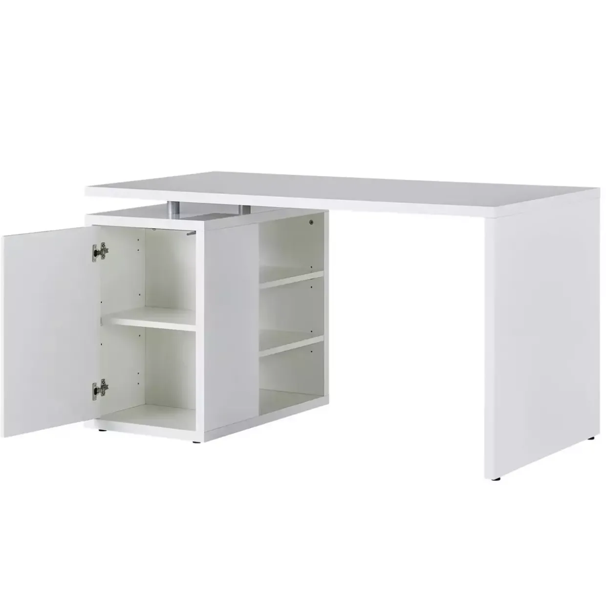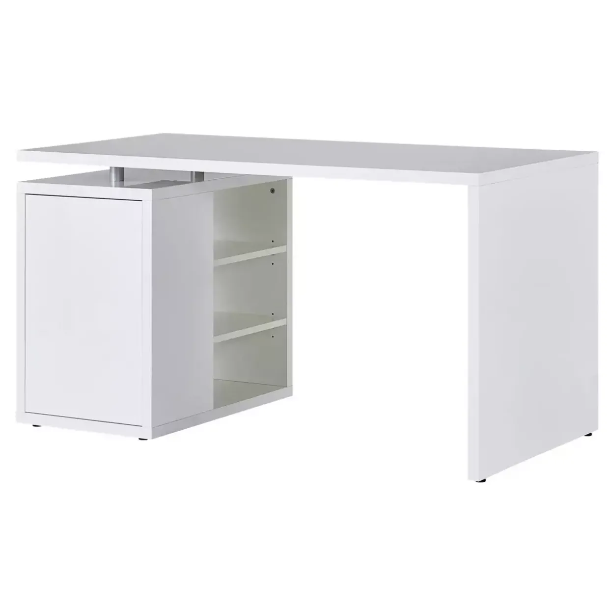 Der weiß hochglänzende Schreibtisch aus Holzwerkstoff verspricht eine elegante und moderne Ergänzung für Ihr Arbeitszimmer. Mit seinem konventionellen Stil fügt er sich nahtlos in verschiedene Raumkonzepte ein und bietet eine zeitlose Ästhetik, die sowohl in klassischen als auch in zeitgemäßen Umgebungen harmoniert.