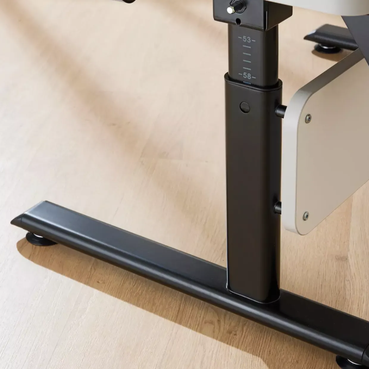 Die Höhenverstellbarkeit des Diego Black Schreibtisches durch eine Kurbel, die von etwa 53 bis 79 cm reicht, sorgt für Flexibilität und ergonomisches Arbeiten. Ein eleganter Materialmix aus Holzwerkstoff verleiht dem Schreibtisch einen modernen Look. Die durchdachte Konstruktion ermöglicht eine Schrägstellung der Tischplatte bis zu 19 Grad, dank dreier hochwertiger Raster-Scheren. Ein besonderes Detail ist die Streifenbürste aus Polypropylen zwischen den Platten, die das Herunterfallen von Stiften verhindert.