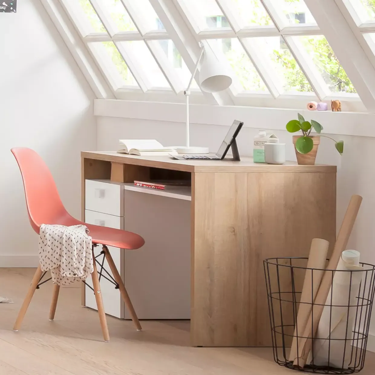 Ein Schreibtisch, der durch seine schlichte Eleganz besticht und gleichzeitig durch seine praktischen Eigenschaften überzeugt, ist der perfekte Begleiter für Ihr Arbeitsumfeld. Lassen Sie sich von der zeitgemäßen Gestaltung und der hochwertigen Verarbeitung inspirieren.