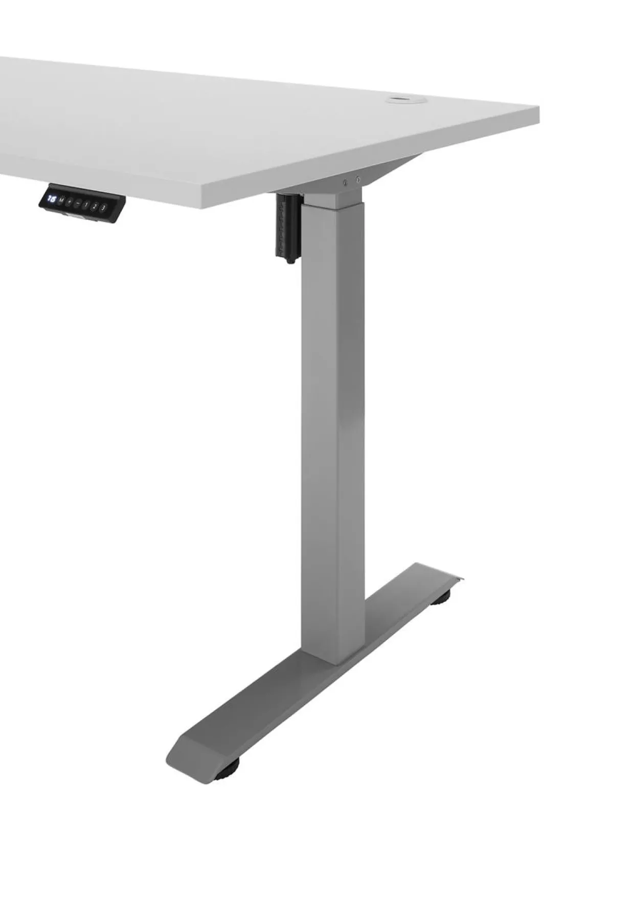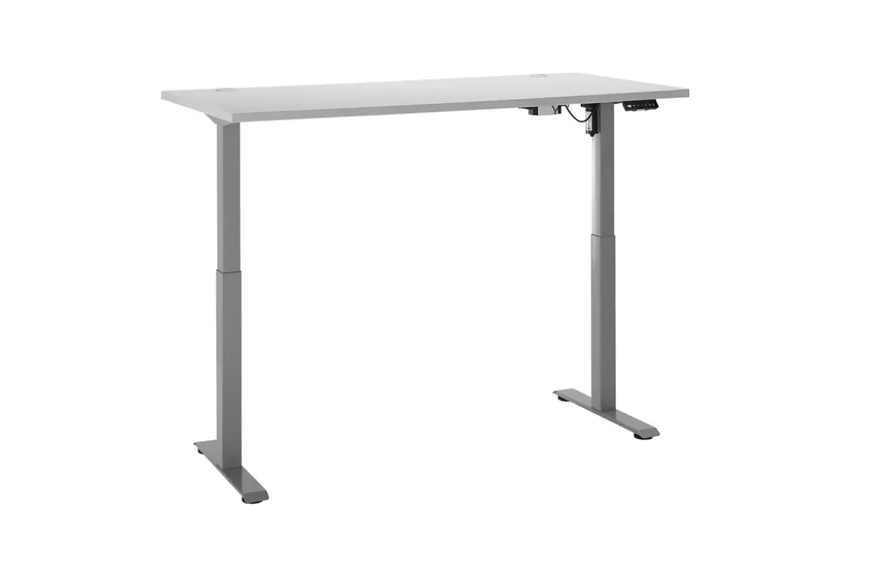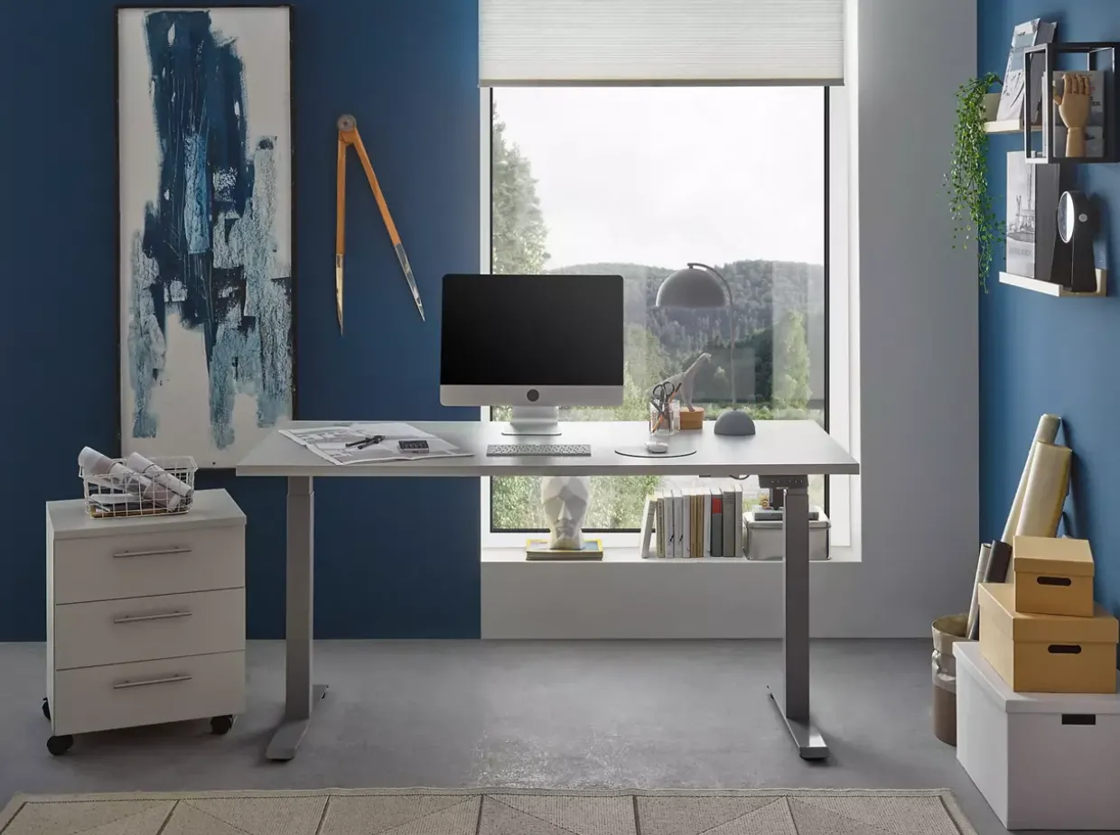 Ein Schreibtisch, der modern ist und in den Farben Silber und Lichtgrau erstrahlt, fügt sich nahtlos in jede zeitgemäße Arbeitsumgebung ein. Die Kombination aus robustem Metall und hochwertigem Holzwerkstoff bietet nicht nur Stabilität, sondern auch eine ansprechende Ästhetik. Ein besonderes Highlight ist die elektrische Höhenverstellbarkeit, die Ihnen ermöglicht, ganz nach Ihren Bedürfnissen zwischen Sitz- und Stehposition zu wechseln. Dieser Komfort wird durch die nützlichen Memory-Tasten ergänzt, mit denen Sie bis zu drei Höhenstufen speichern und über eine digitale Anzeige einfach abrufen können.