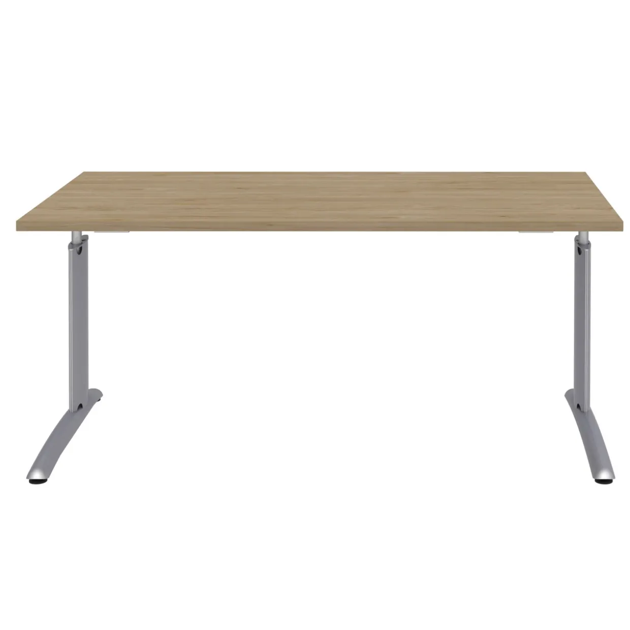 Die melaminharzbeschichtete Oberfläche der Tischplatte ist pflegeleicht und widerstandsfähig, ein praktisches Merkmal, das den täglichen Gebrauch erleichtert. Sie können sich darauf verlassen, dass selbst bei intensiver Nutzung keine Abnutzungsspuren entstehen. Der C-Fuß, dessen Höhe zwischen 70 und 82 cm verstellbar ist, bietet Flexibilität und ermöglicht eine ergonomische Anpassung an individuelle Bedürfnisse.