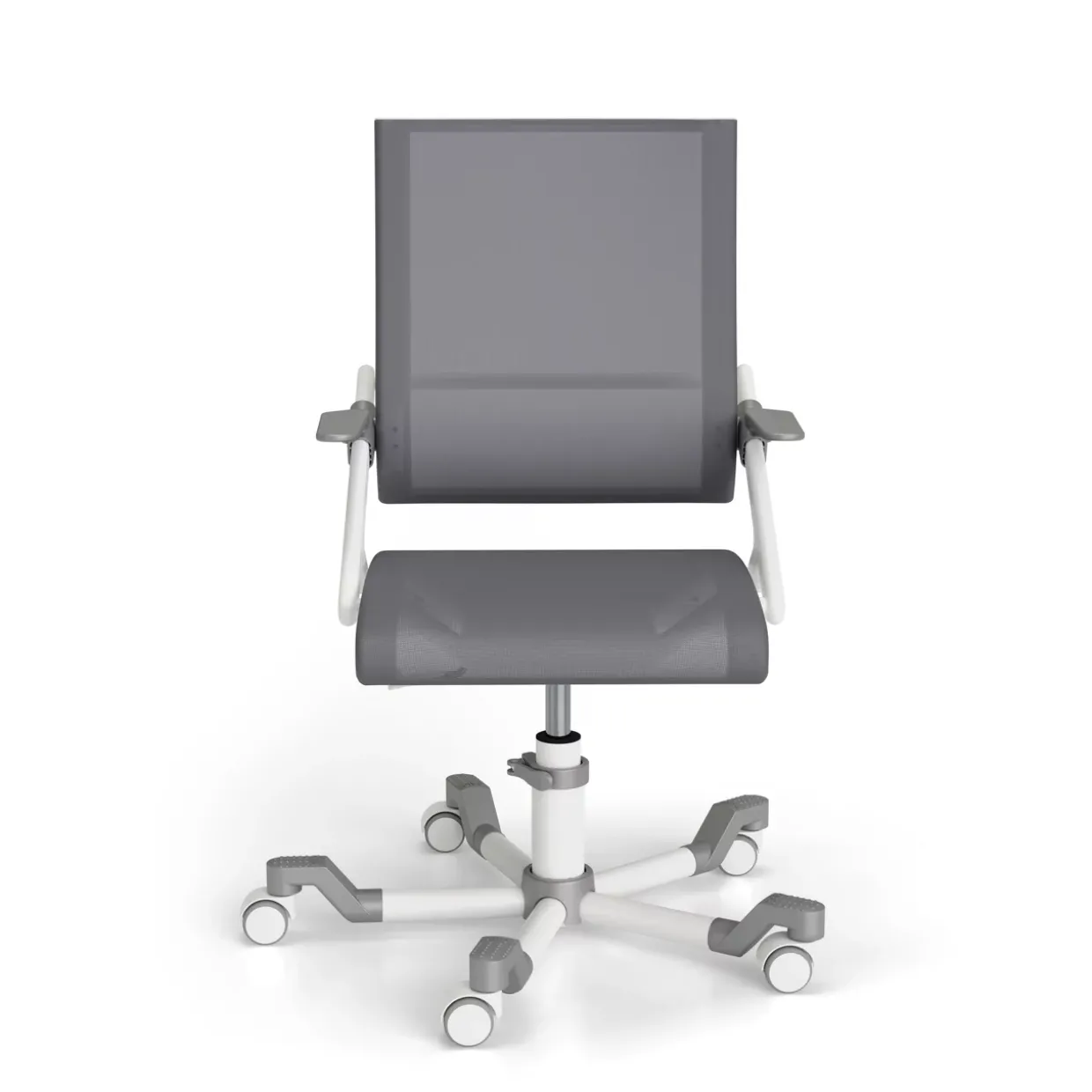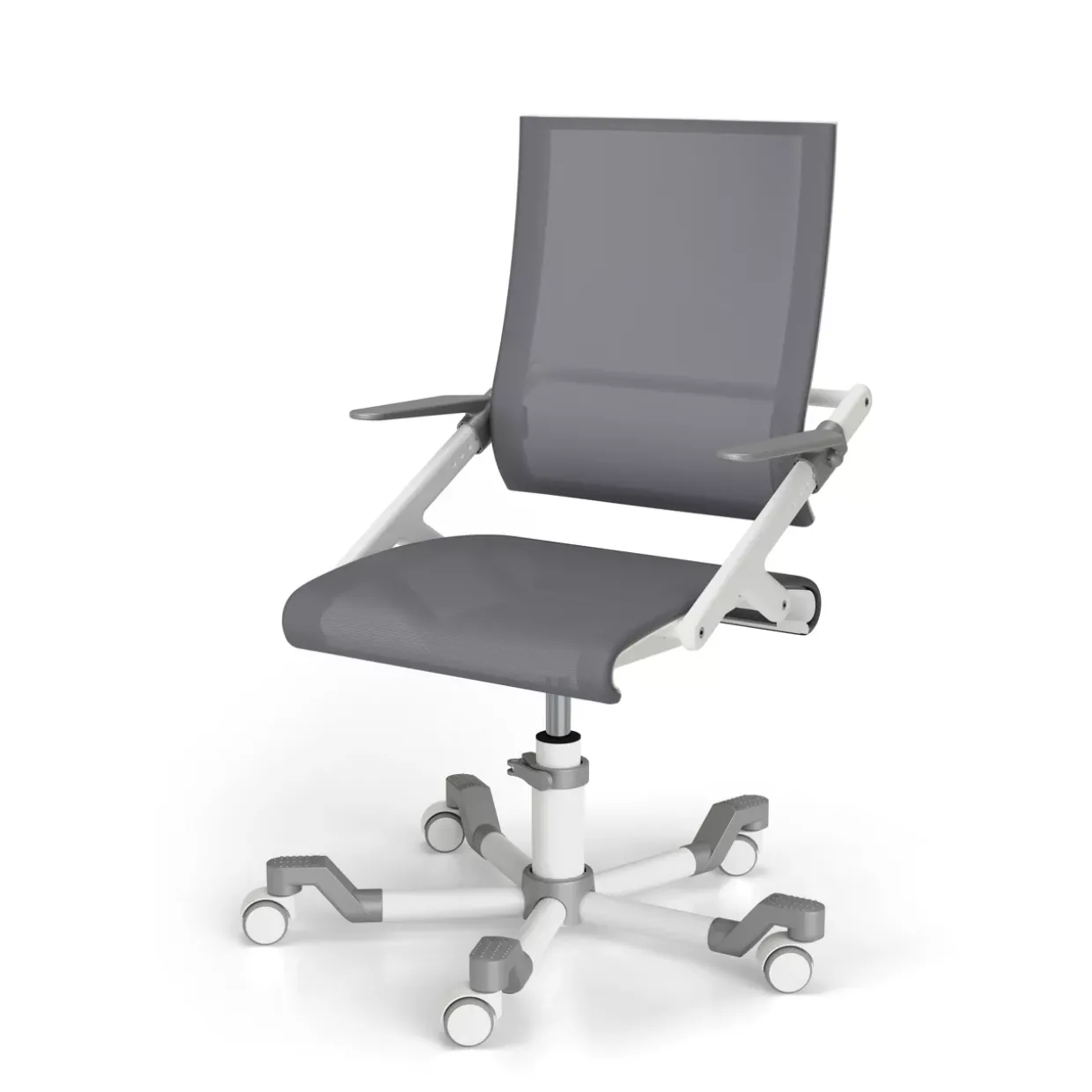 Graue und weiß-silbergraue Farbtöne prägen das moderne Design des Ypso Schreibtischstuhls Schoolworld. Dieser Stuhl überzeugt durch seine Kombination aus Stoff und Metall, die sowohl Stabilität als auch Komfort bietet. Die Fußform mit Rollen sorgt für Flexibilität und Mobilität, ideal für dynamische Arbeitsumgebungen. Polyester, eine Textilart, die für ihre Langlebigkeit und Pflegeleichtigkeit bekannt ist, bildet die Grundlage des Bezugs.