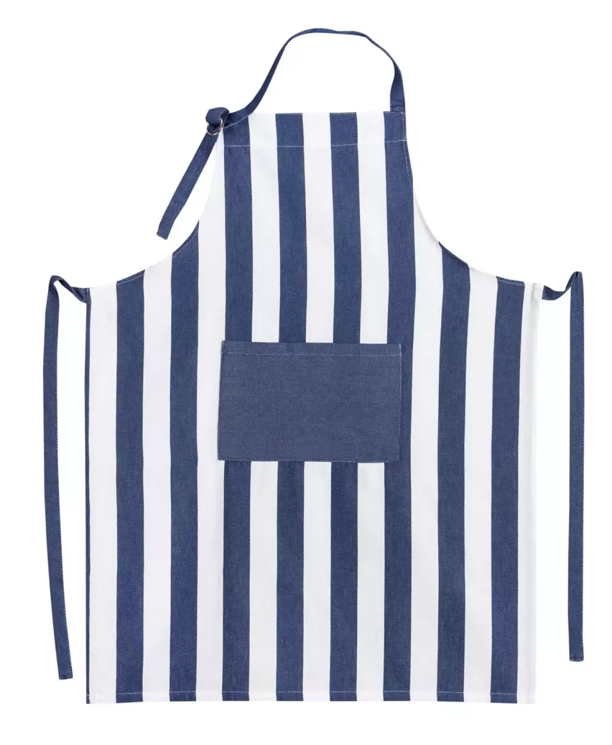 Ein Hauch von Eleganz durchzieht Ihren Küchenalltag mit der modernen Schürze im Streifenmodell. Die Kombination aus Blau und den stilvollen Längenstreifen verleiht diesem Accessoire einen frischen und zeitlosen Look. Hochwertige Baumwolle bildet die Grundlage dieses Textils, das mit dem renommierten Ökotex Standard 100 zertifiziert ist und somit ein Höchstmaß an Textilsicherheit bietet.
