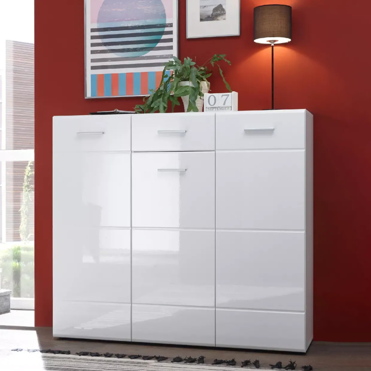 Eine Schuhkommode im modernen Stil zieht alle Blicke auf sich. Die Orlando 3 überzeugt mit ihrer klaren, zeitgemäßen Ästhetik und fügt sich nahtlos in jedes Wohnkonzept ein. Strahlend in Weiß und Weiß Hochglanz gestaltet, verleiht sie Ihrem Eingangsbereich eine frische und elegante Note.