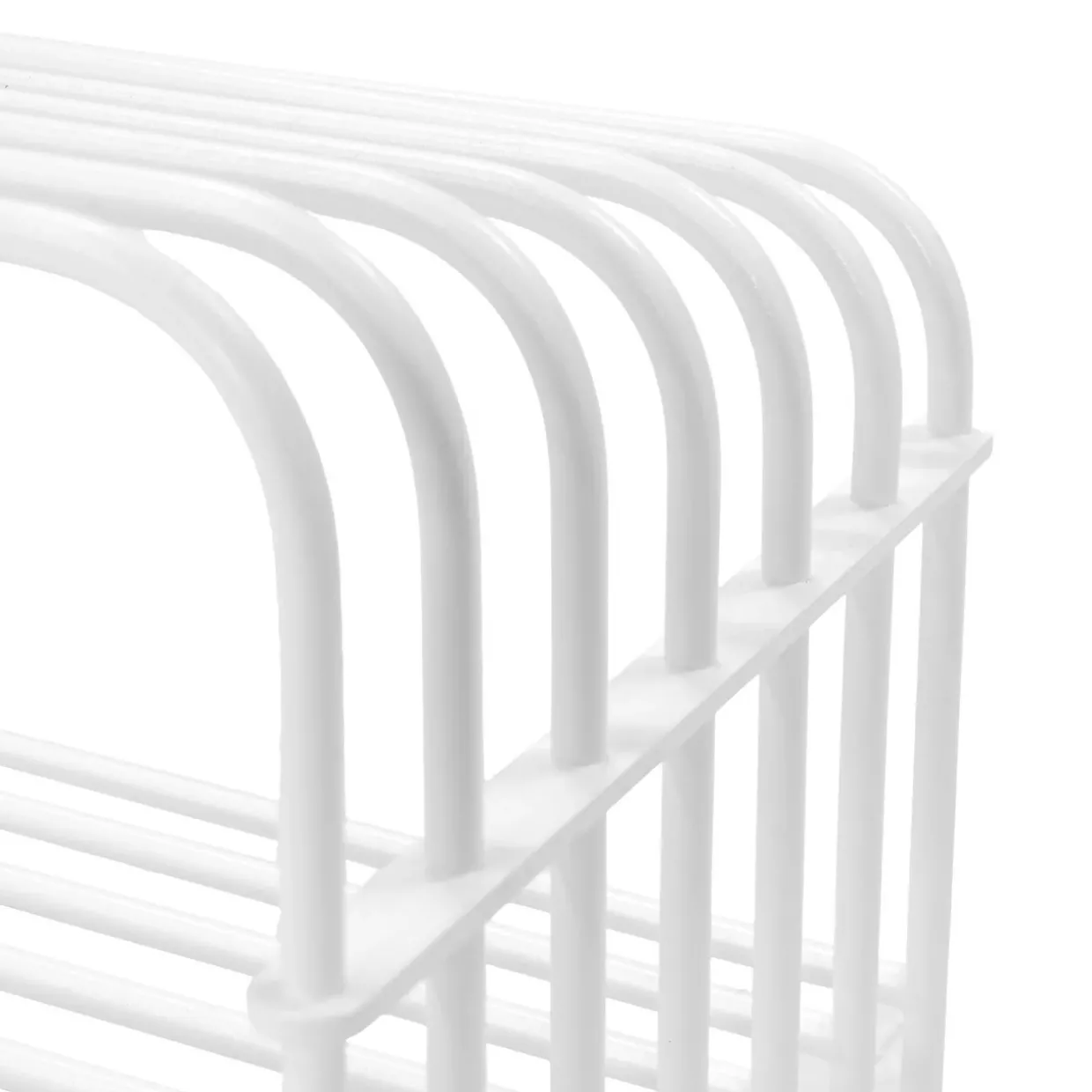 Inspiriert von der Eleganz eines Zauns, bietet das GRID Schuhregal ein modernes Design mit ineinandergreifenden Bögen. Diese Anordnung schafft nicht nur eine optisch ansprechende, sondern auch funktionale Ablage für Ihre Schuhe. Die Struktur besteht aus robustem Stahl, der mit einer hochwertigen weißen Pulverbeschichtung versehen ist, um Langlebigkeit und eine stilvolle Optik zu gewährleisten.