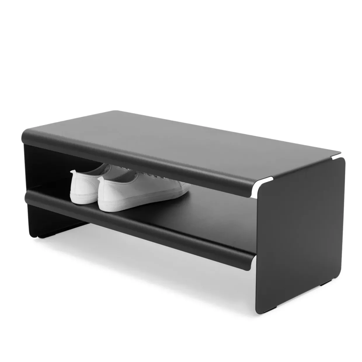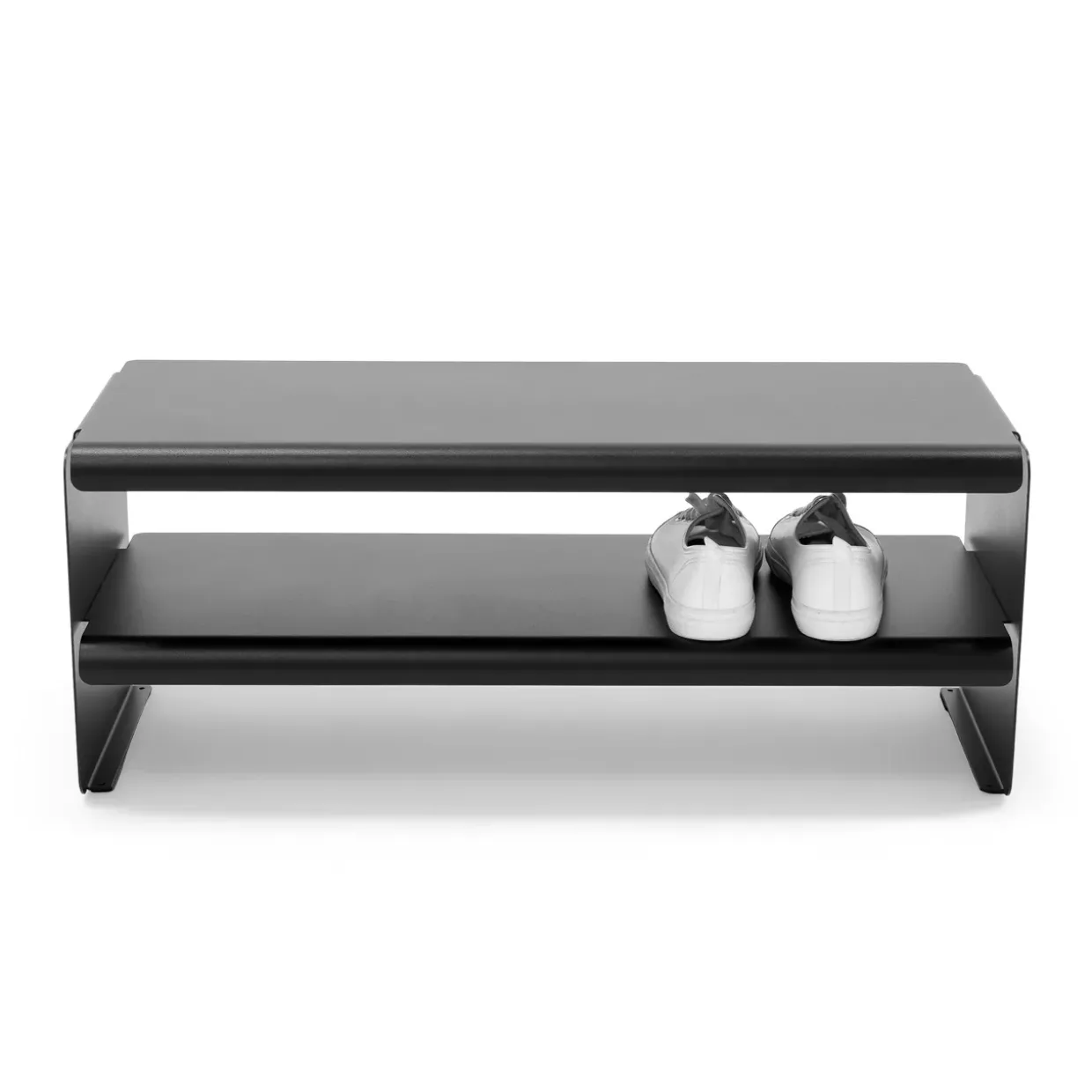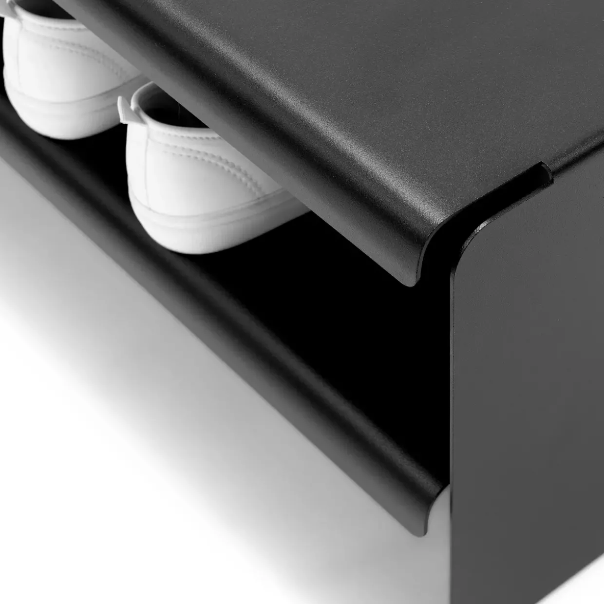 Ein moderner Stil zeichnet das LINEA Schuhregal aus, das sich nahtlos in jede zeitgemäße Einrichtung einfügt. Mit seinen geschlossenen Seiten bietet es eine dezente Möglichkeit, Schuhe ordentlich aufzubewahren und den Flur stets aufgeräumt wirken zu lassen. Eine elegante schwarze Pulverbeschichtung verleiht dem robusten Stahlrahmen nicht nur eine ansprechende Optik, sondern schützt auch vor Abnutzung und Kratzern.