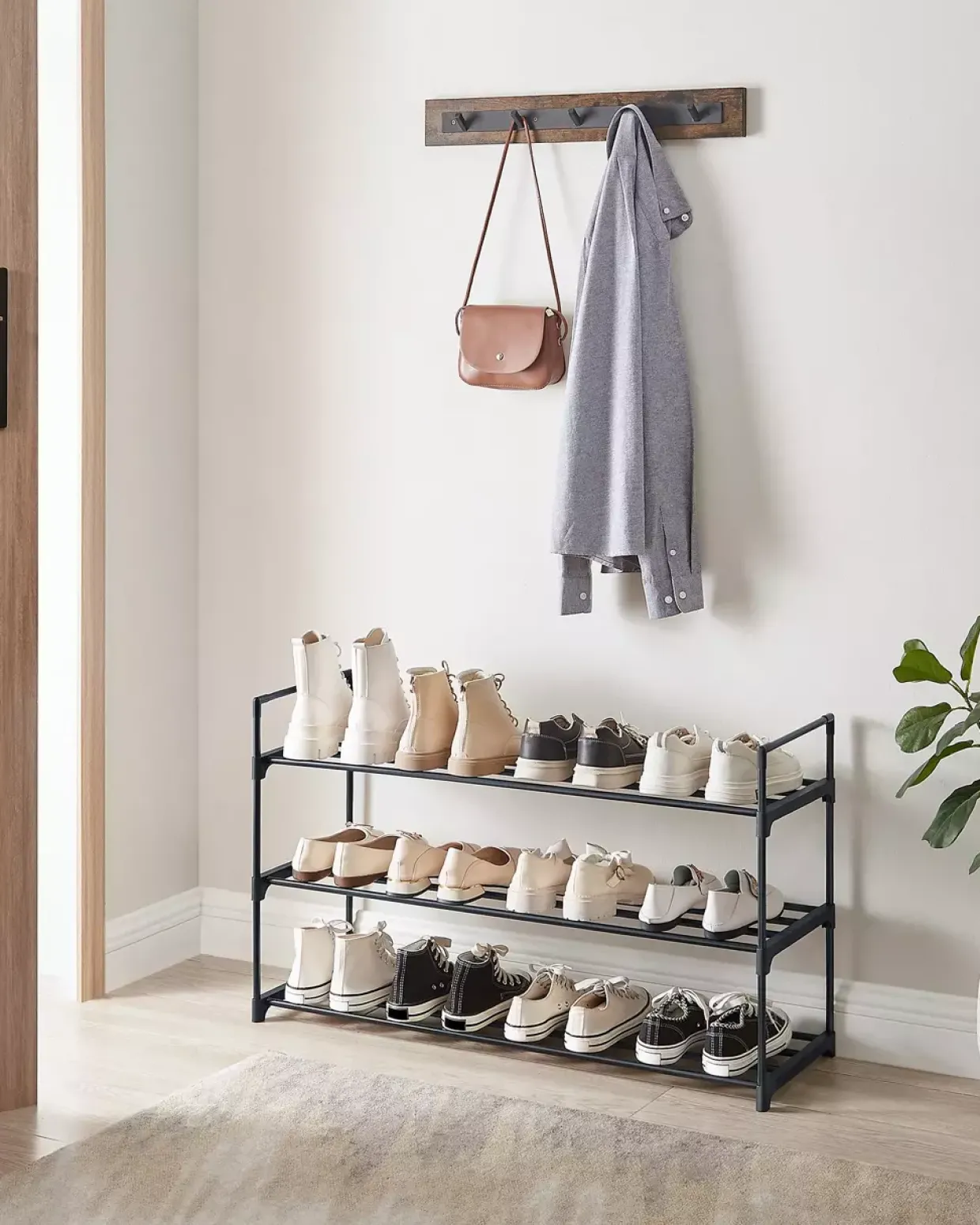 In einem modernen Stil gestaltet, präsentiert sich das Schuhregal LSA13BKV1 als eine ästhetische Bereicherung für jeden Flur oder Eingangsbereich. Stahl in elegantem Schwarz verleiht dem Design eine zeitlose Eleganz, die sich nahtlos in verschiedenste Wohnkonzepte einfügt.