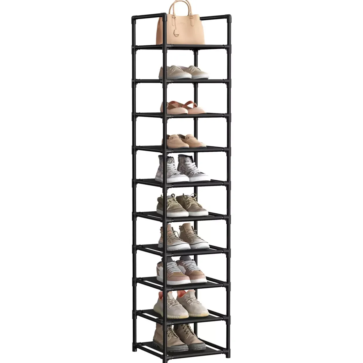 Stahl schwarz verleiht dem Raum eine besondere Eleganz. Das Schuhregal LSR110B02 vereint modernes Design mit Funktionalität und sorgt für Ordnung in Ihrem Zuhause. Mit seiner klaren Linienführung und der zeitgemäßen Ästhetik passt es perfekt in ein stilvolles Ambiente. Die Kombination aus robustem Metall und hochwertigem Kunststoff garantiert eine lange Lebensdauer und Stabilität.