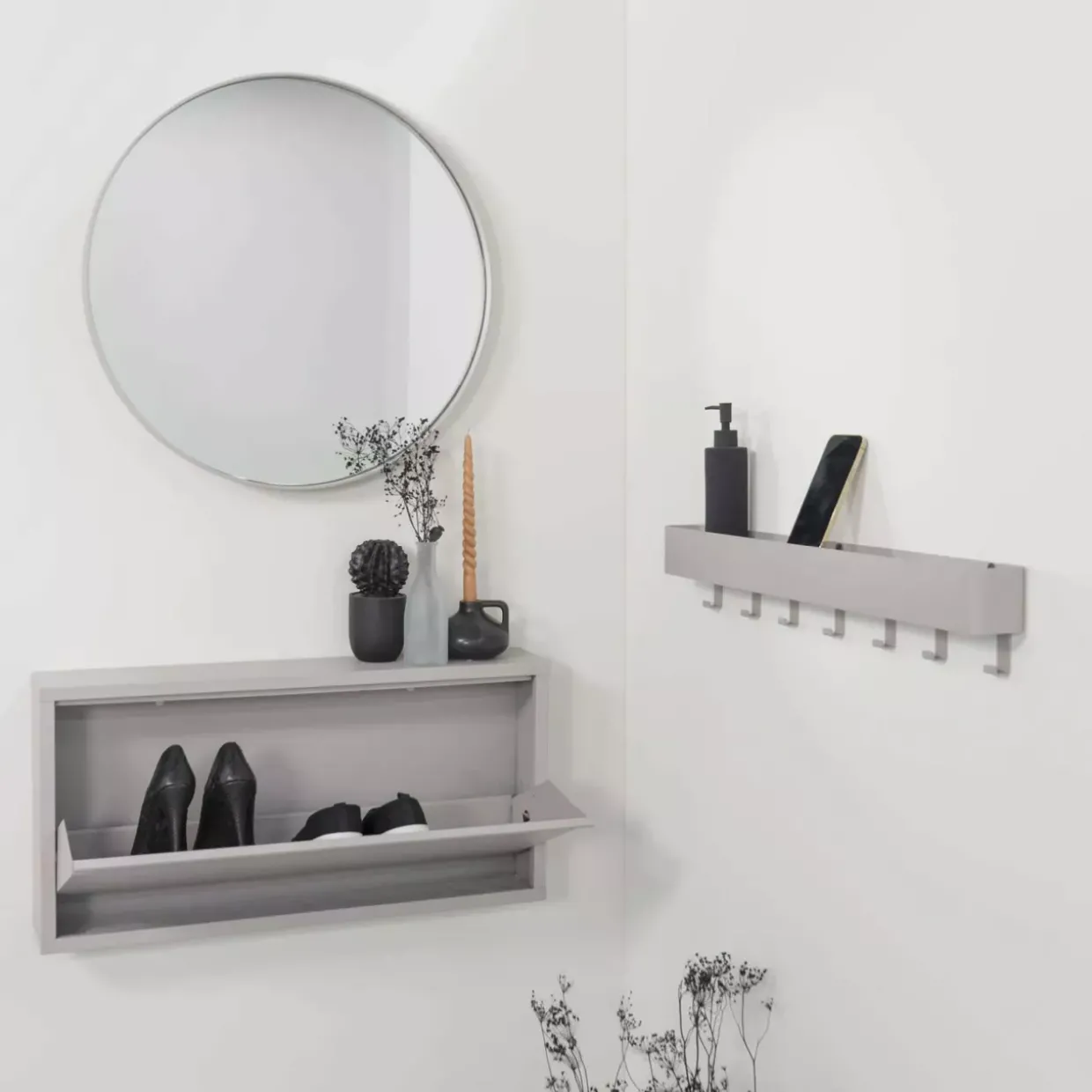 Silky Taupe als Farbton verleiht dem Billy Schuhschrank eine elegante Ausstrahlung, die sich nahtlos in moderne Wohnräume einfügt. Gefertigt aus hochwertigem Metall, besticht der Schuhschrank durch seine Langlebigkeit und Robustheit. Ein harmonisches Zusammenspiel von Design und Funktionalität, das in jedem Zuhause für Ordnung sorgt.Der moderne Stil des Modells Silky 1 hebt sich besonders durch seine klare Linienführung und zeitlose Ästhetik hervor. Die Farbgebung in Silky Taupe und Stahl sorgt für einen subtilen, aber dennoch präsenten Akzent, der sich sowohl in minimalistische als auch in opulentere Einrichtungsstile integrieren lässt.Neben der ansprechenden Optik bietet der Schuhschrank eine durchdachte Innenaufteilung, die eine optimale Organisation Ihrer Schuhsammlung ermöglicht. So bleibt nicht nur der Boden frei von Unordnung, sondern Ihre Schuhe sind auch stets griffbereit.Besonders in kleinen Räumen erweist sich der Schuhschrank als platzsparende Lösung, die durch ihre schmale Bauweise überzeugt. Das Modell Silky 1 ist nicht nur ein praktisches Möbelstück, sondern auch ein stilvolles Element, das Ihrem Eingangsbereich eine moderne Note verleiht. Ein Möbelstück, das sowohl durch Design als auch Funktion überzeugt, ohne dabei aufdringlich zu wirken.