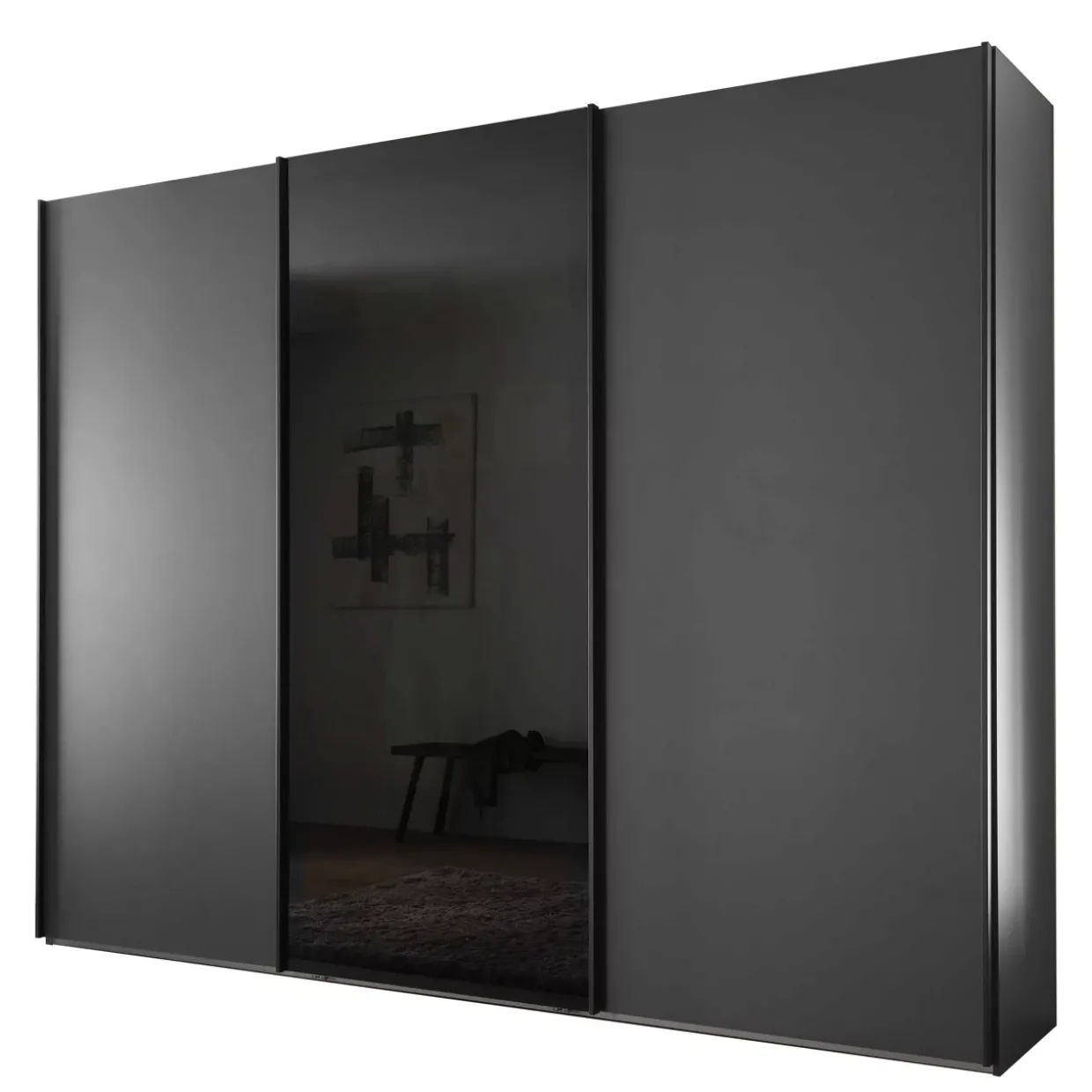 Der moderne Stil des Dubai Schwebers verleiht jedem Raum eine elegante Note. Zwei Türen in edlem Graphit-Dekor flankieren eine mittig platzierte Glastür in Parsol-Grau und schaffen so einen harmonischen Kontrast. Diese Kombination aus verschiedenen Dekoren, darunter auch das Streifendekor in Silber-Grau, sorgt für eine faszinierende Optik und setzt stilvolle Akzente. Die Verwendung von hochwertigem Glas im Parsol-Grau verleiht dem Möbelstück eine zeitgemäße Leichtigkeit und unterstreicht seine Modernität.