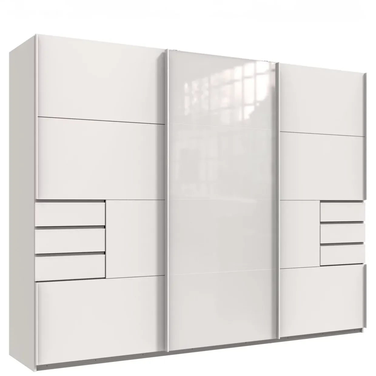 Anzahl: Kleiderstangen 2 / Einlegeböden 6 / Türen 3 / Schubkasten 6