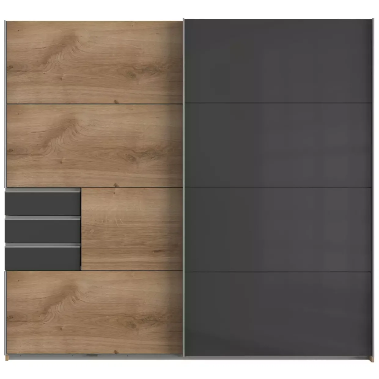 Eiche Nachbildung verleiht dem Saigon Schwebertürenschrank eine warme und einladende Ausstrahlung, die sich harmonisch in jedes Loft-Design einfügt. Diese stilvolle Kombination aus Glas grey und graphit ergänzt das moderne Erscheinungsbild und schafft einen eleganten Kontrast, der das Auge anzieht.