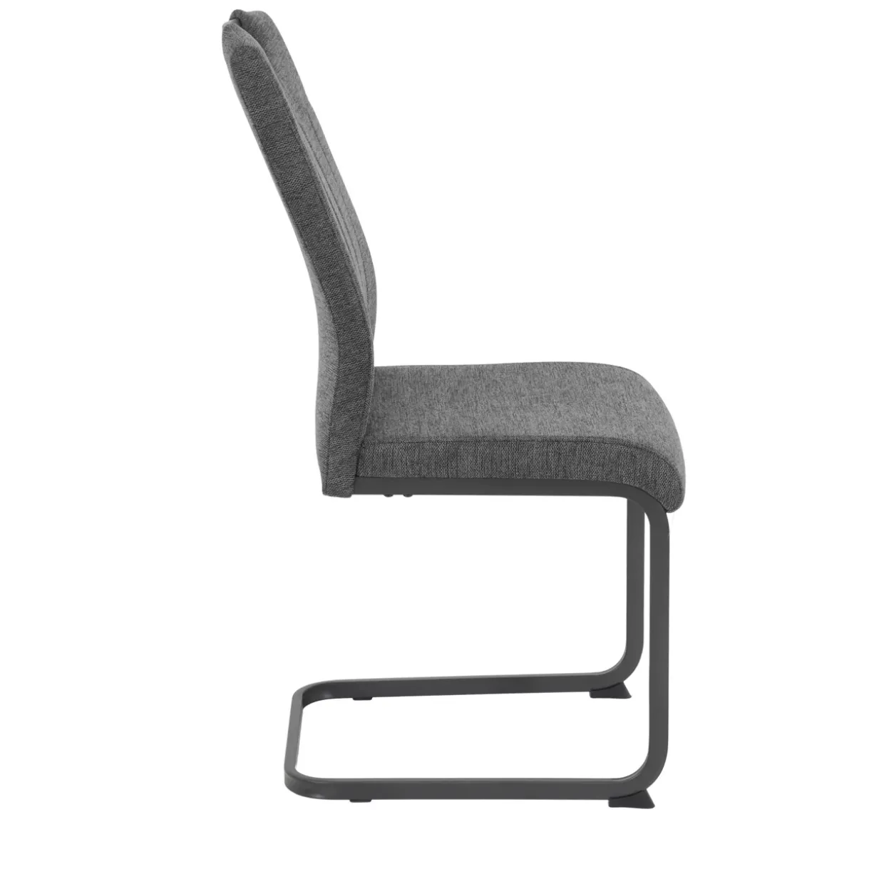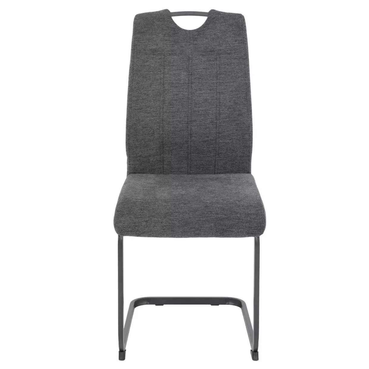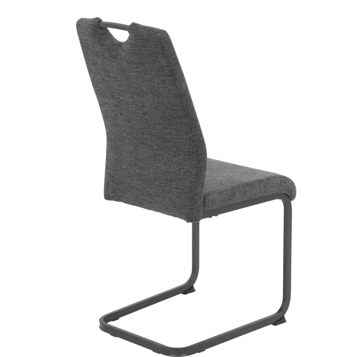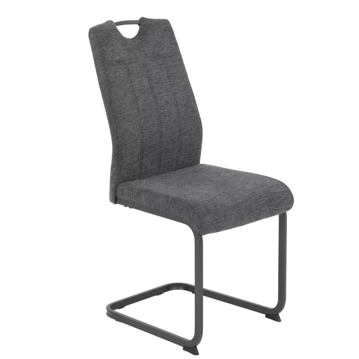 Der Stoffbezug, kombiniert mit einem robusten 4-Fußgestell aus Metall, bietet nicht nur Stabilität, sondern auch eine angenehme Haptik. Dank der sorgfältig gearbeiteten Steppnähte entsteht ein harmonisches Gesamtbild, das sowohl optisch als auch funktional überzeugt. Der Griff an der Rückenlehne ist ein praktisches Detail, das zusätzliche Mobilität und Flexibilität im Raum gewährleistet.