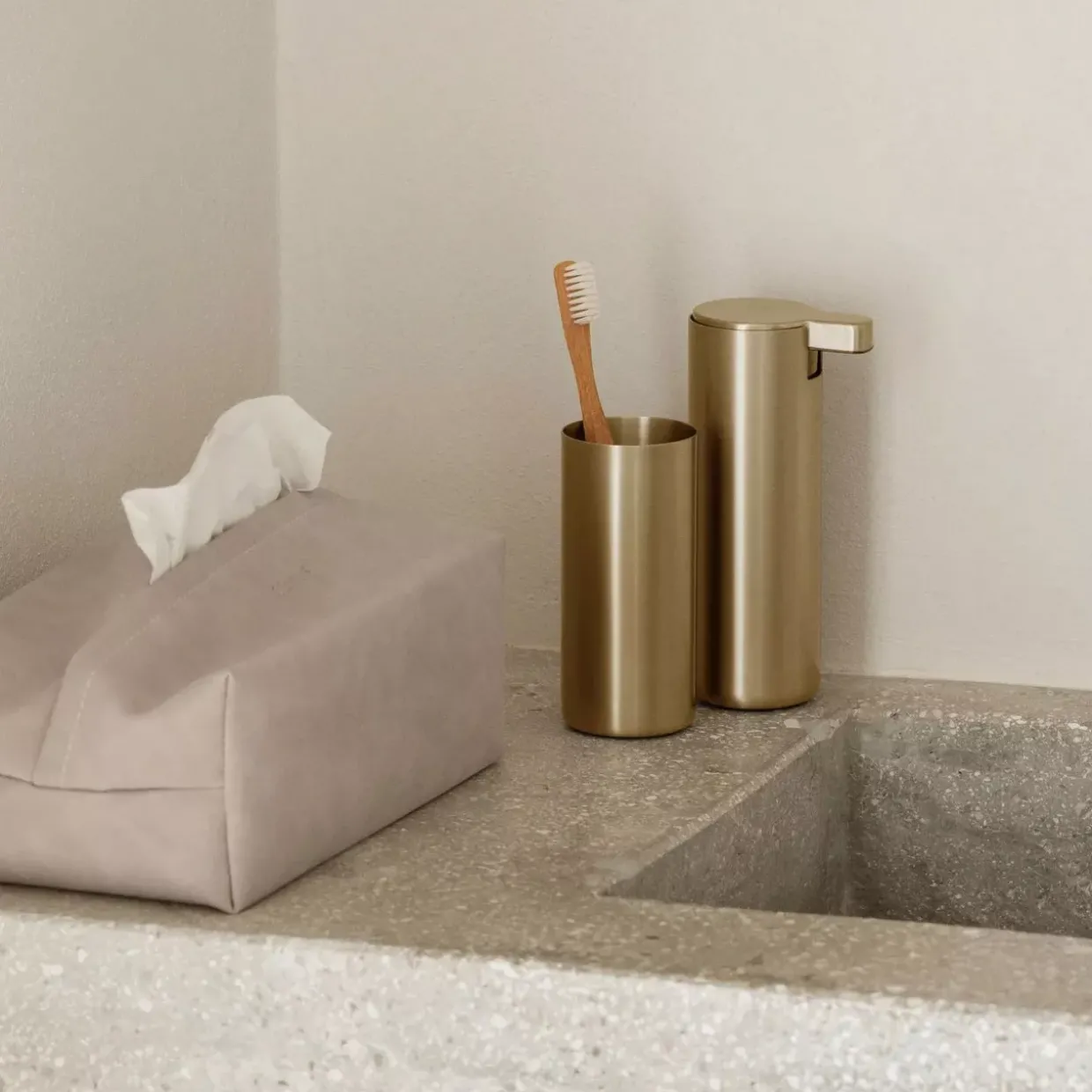 Mit einem eleganten Stil verleiht dieser Seifenspender Ihrem Badezimmer eine besondere Note. Die subtile Brass-Farbe mit einem metallischen Finish setzt Akzente und fügt sich harmonisch in verschiedenste Einrichtungsstile ein. Ein Material aus hochwertigem Kunststoff sorgt für Langlebigkeit und Robustheit, ohne an Stil einzubüßen.