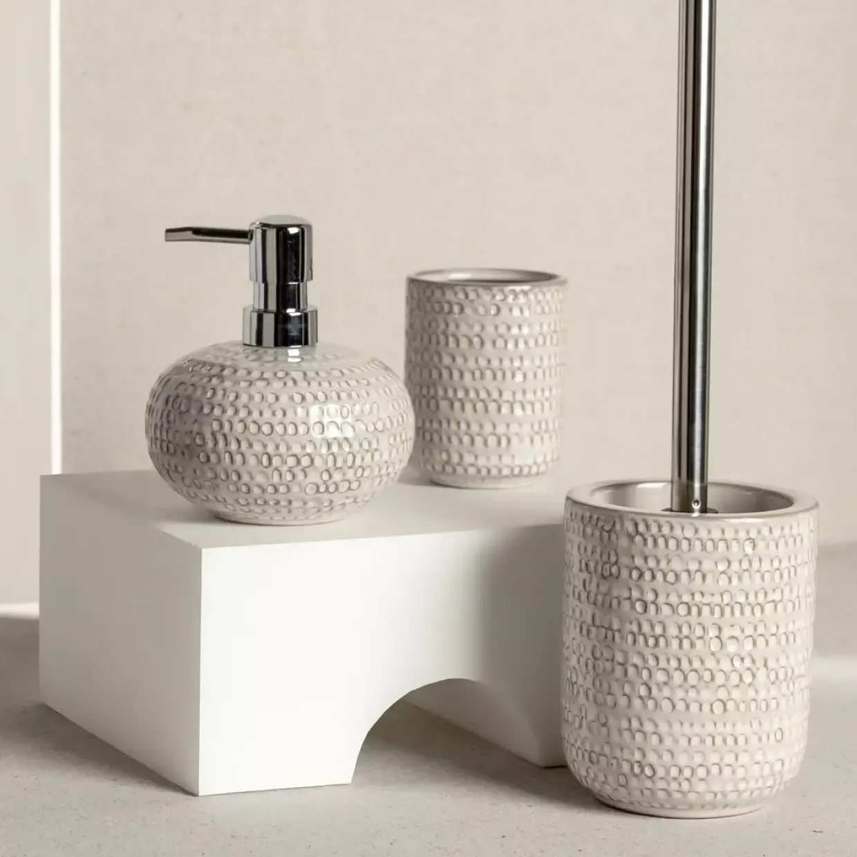 Ein Hauch von Modernität zieht mit dem Modell Pergole in Ihr Zuhause ein. Der Seifenspender überzeugt durch seine elegante Kombination aus Creme und Chrom, die sich nahtlos in ein zeitgemäßes Interieur einfügt. Hergestellt aus einer raffinierten Mischung aus Keramik und Kunststoff, bietet er nicht nur Langlebigkeit, sondern auch eine angenehme Haptik. Der Durchmesser von 11,5 cm sorgt für einen stabilen Stand und ein großzügiges Fassungsvermögen, das den Seifenspender zu einem praktischen Begleiter im Alltag macht.