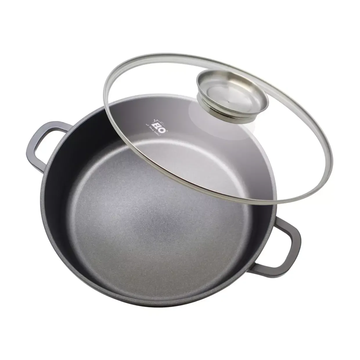 Alucast Servierpfanne 28cm rund mit Glasdeckel