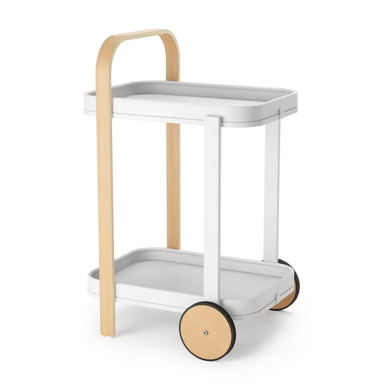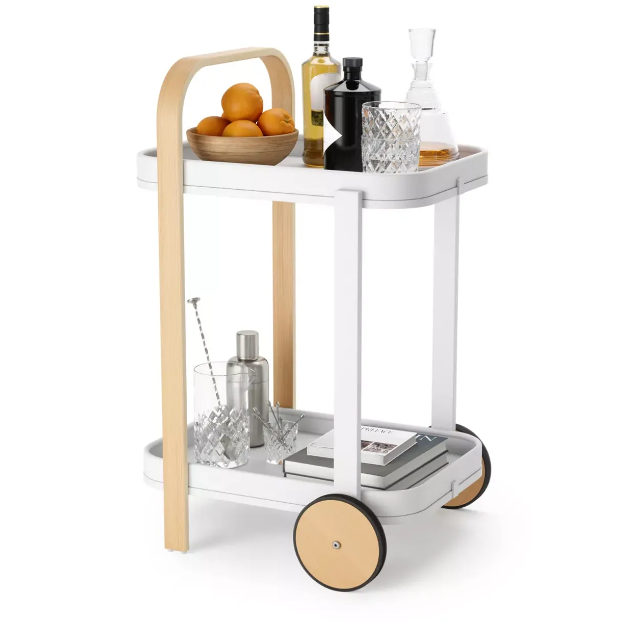 Praktisch sind die Rollen, die eine flexible Mobilität ermöglichen. So lässt er sich mühelos von einem Raum in den anderen bewegen. Auch als dekoratives Element macht der Servierwagen eine gute Figur und kann mit Pflanzen oder anderen Accessoires individuell gestaltet werden.