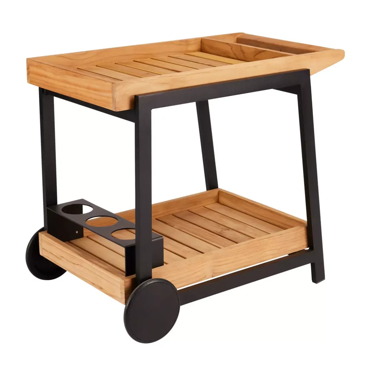 Für diejenigen, die Wert auf Design und Funktionalität legen, stellt der Frido die ideale Lösung dar. Die Kombination aus Metall und Teakholz schafft ein zeitloses Erscheinungsbild, das sowohl in modernen als auch in klassischen Einrichtungen seine Wirkung entfaltet. Wenn Sie auf der Suche nach einem Servierwagen sind, der nicht nur funktional, sondern auch ein ästhetischer Blickfang ist, bietet sich Frido als passendes Stück an. Genießen Sie die Sommerzeit mit einem Hauch von Eleganz und Praktikabilität.