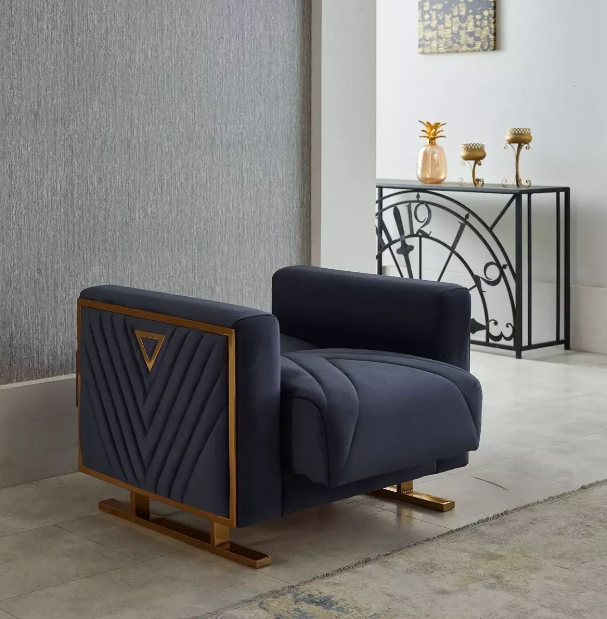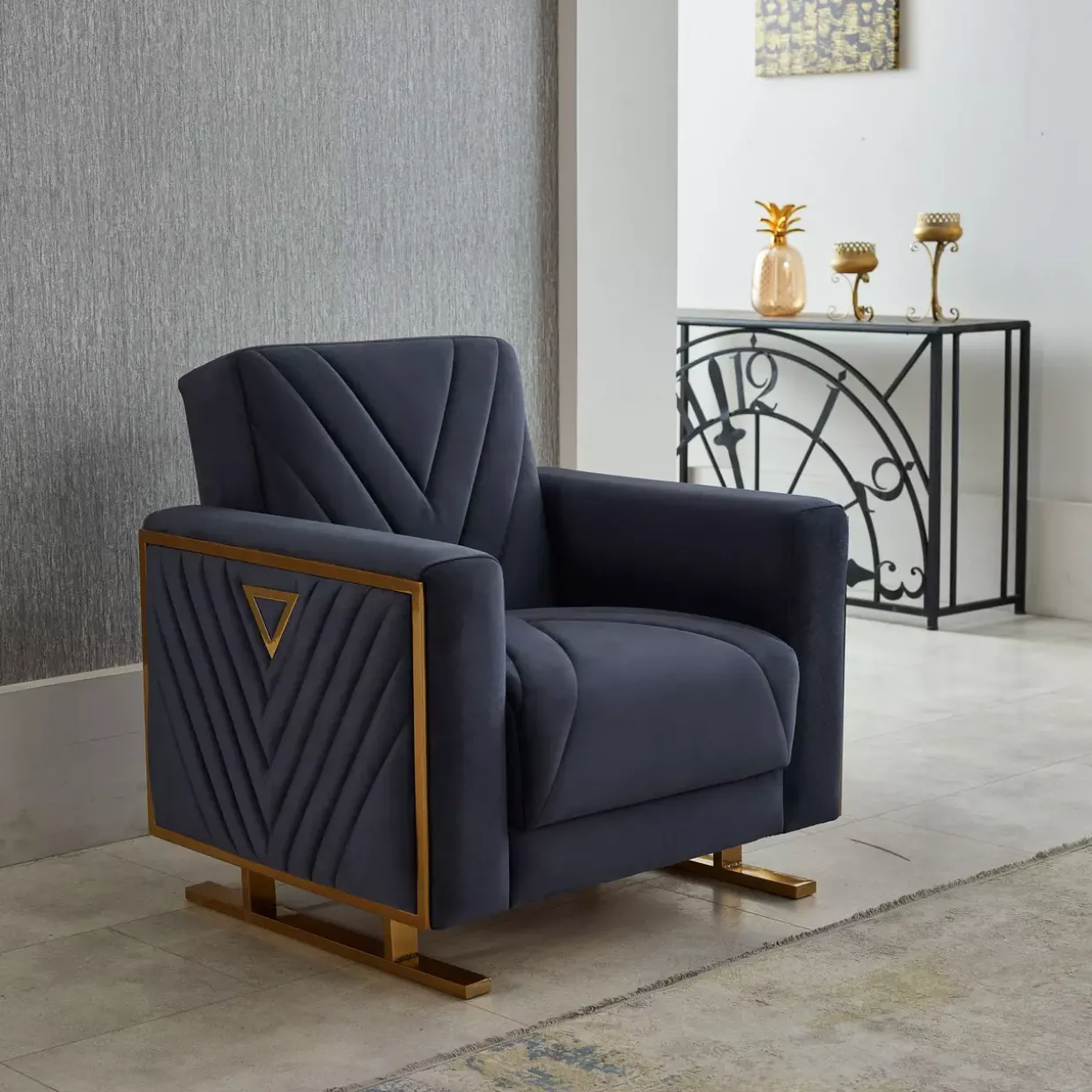 Luxuriös und funktional präsentiert sich der Fermino Sessel, der mit seinem Bonellfederkern im Sitz und Rücken höchsten Komfort bietet. Ein stilvolles Zusammenspiel von Soft Anthrazit und Chrom Gold verleiht diesem Möbelstück eine edle Ausstrahlung. Der elegante Stoffbezug aus hochwertigem Polyester ergänzt das Design und garantiert Langlebigkeit.