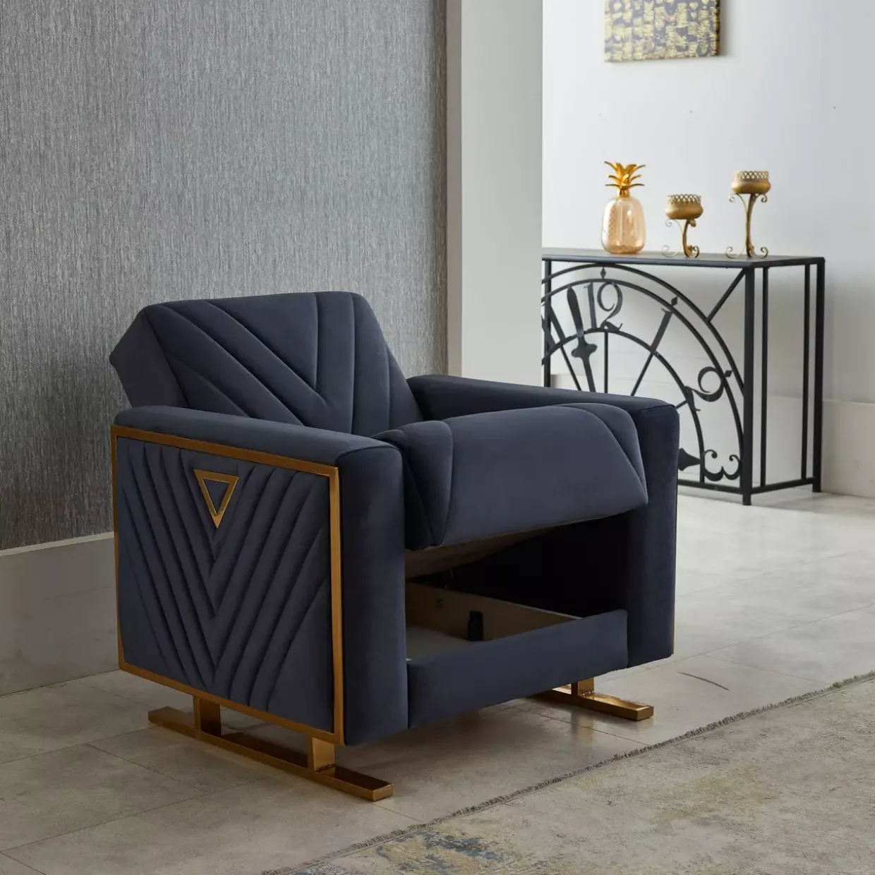 Nicht nur ästhetisch ansprechend, sondern auch praktisch: Der integrierte Stauraum mit Bettkasten bietet eine diskrete Lösung für zusätzlichen Platzbedarf. Der Echtbezug des Rückens unterstreicht die Exklusivität und sorgt dafür, dass der Sessel in jedem Raum eine gute Figur macht.